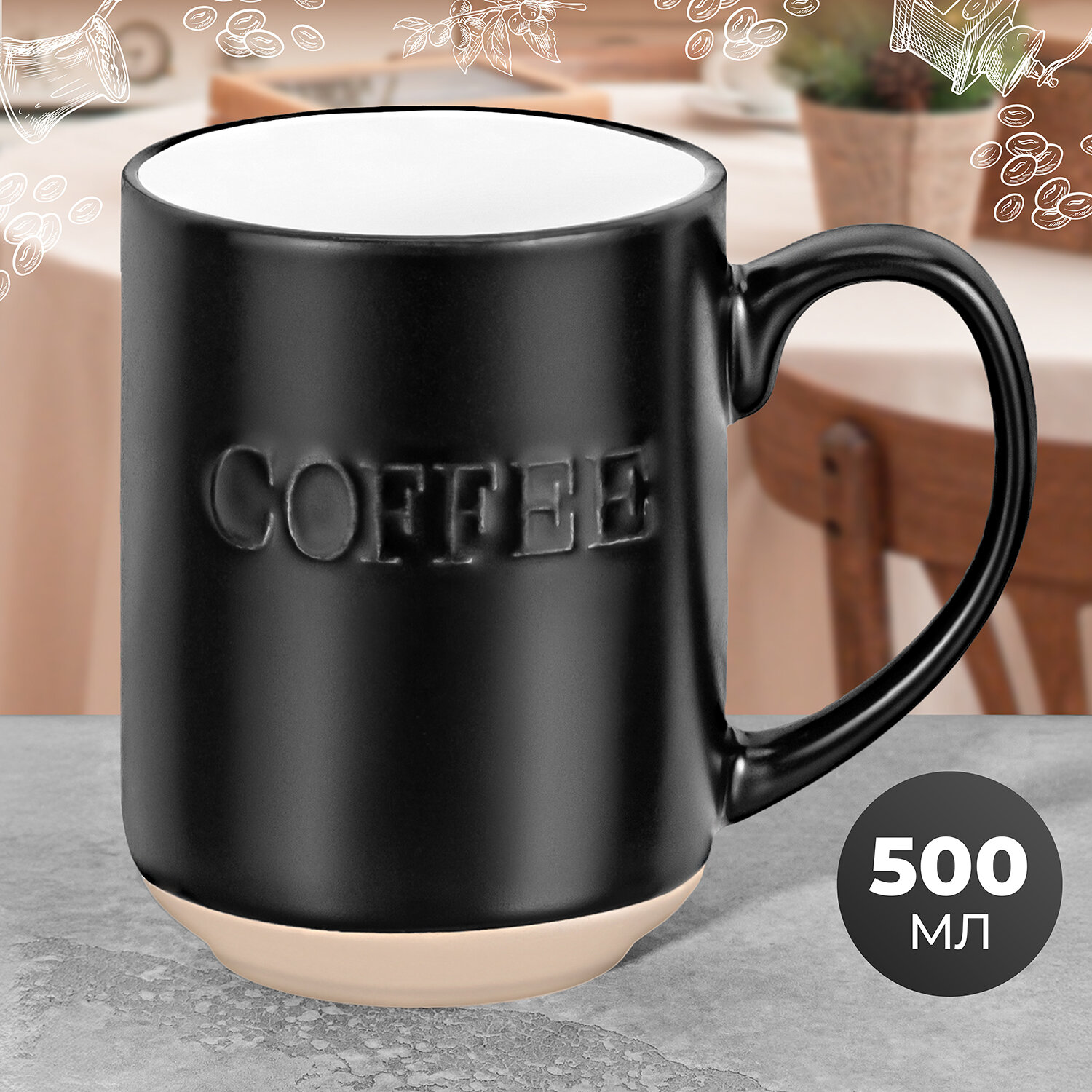 Кружка, чашка для чая, кофе, капучино Elan Gallery "COFFEE" 500 мл 13х8,8х11,5 см, черная интересное: