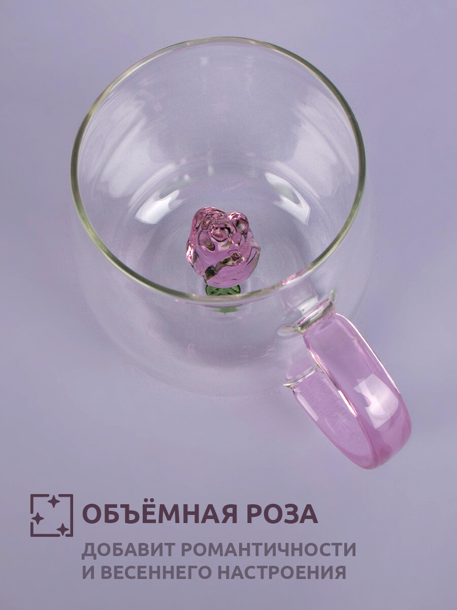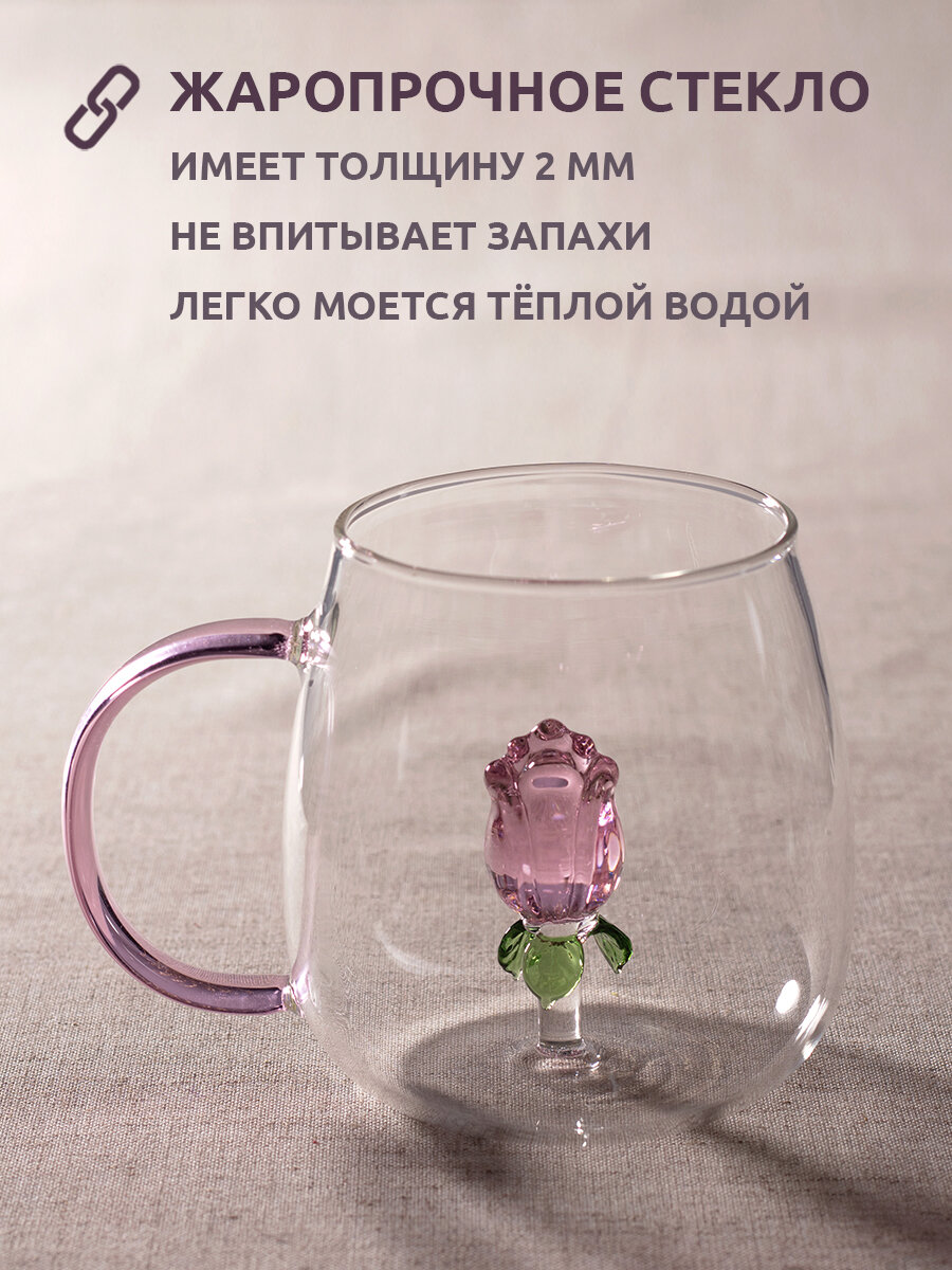 Кружка Agness "Rose" объем 420 мл, для горячих напитков, стекло, с цветком роза интересное: