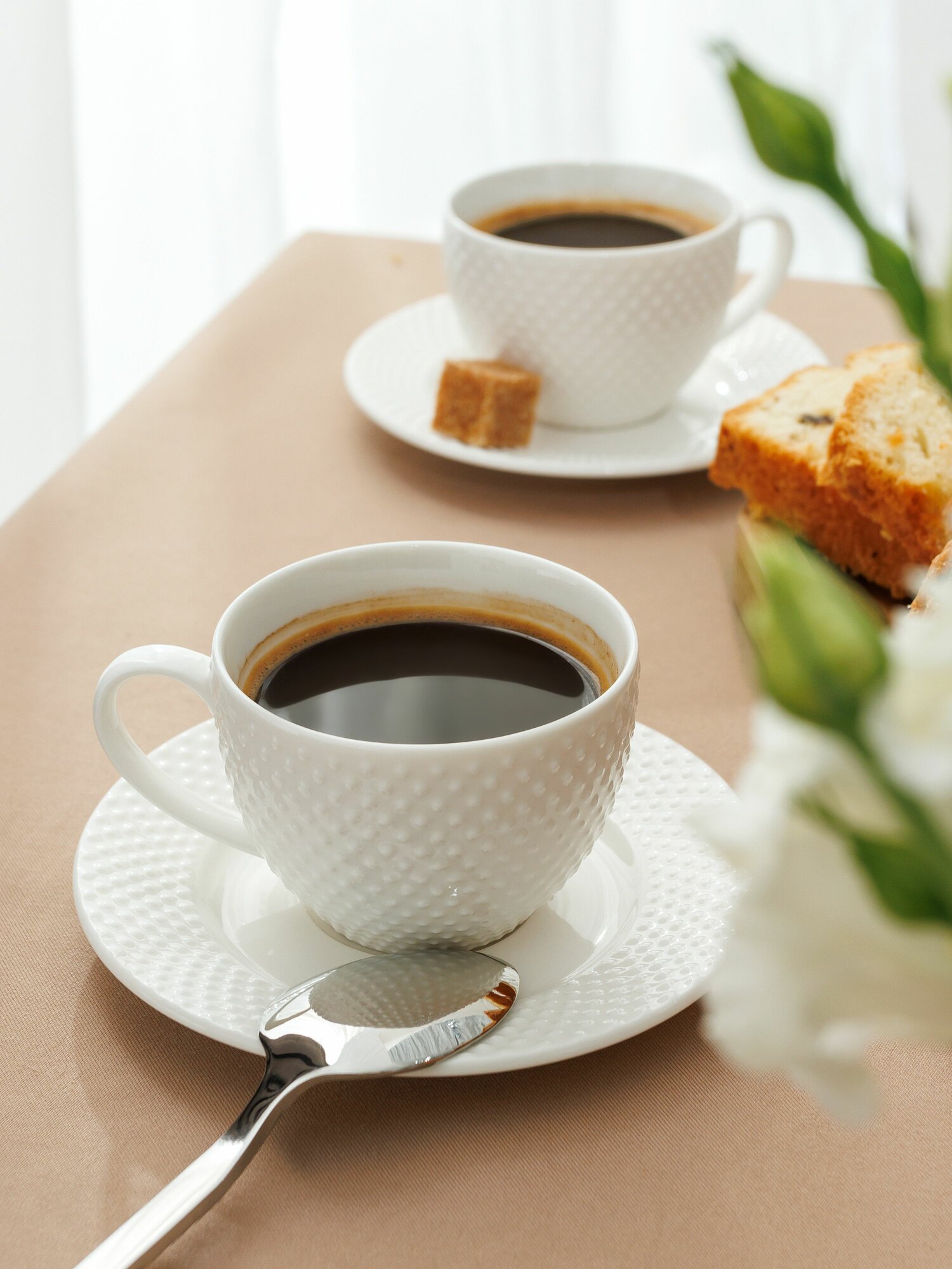 Кофейная пара из костяного фарфора 4 шт. UNIFICO кружка 9,1 см 120 мл, блюдце 12 см. интересное: