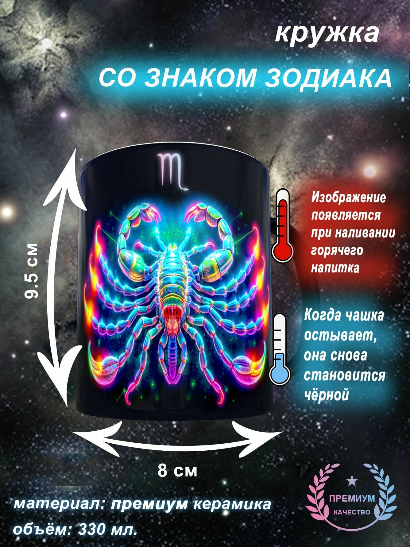 СохранитьКружка меняющая цвет от температуры со знаком зодиака Скорпион / 330 мл, 1 шт интересное: