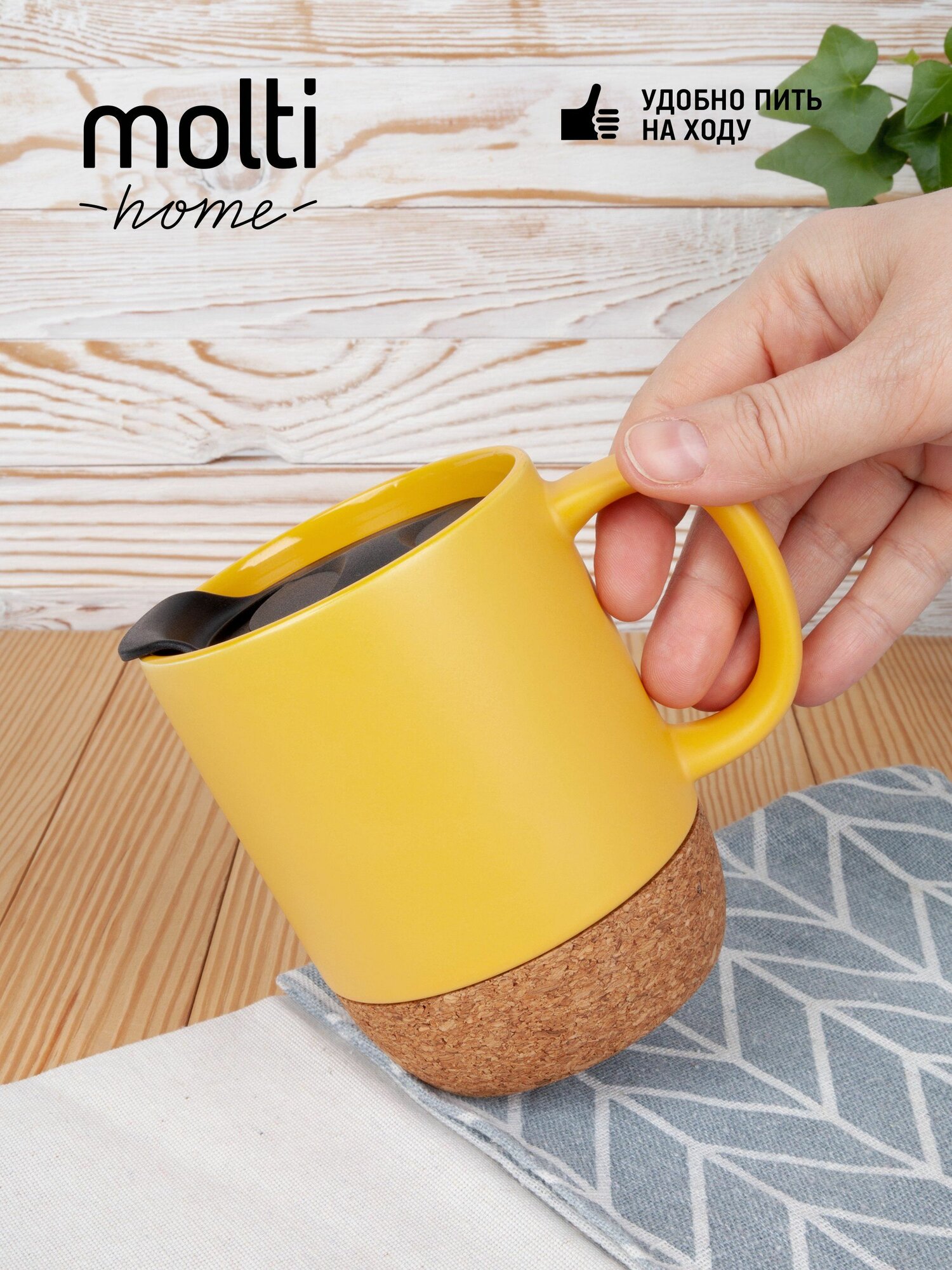 СохранитьКружка для чая и кофе molti Corky Walk чашка подарочная с подставкой и крышкой 320 мл, желтая интересное: