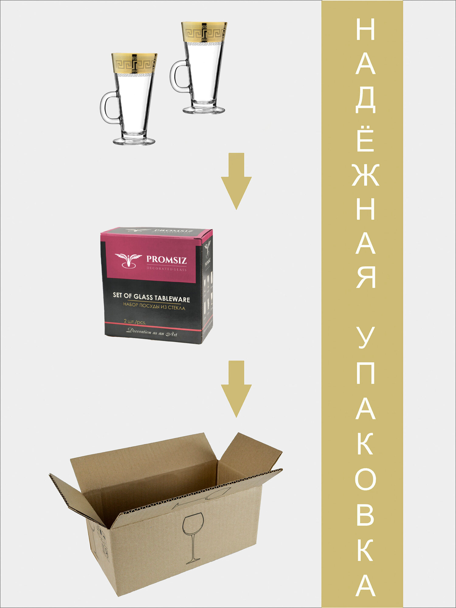 Набор кружек с алмазной гравировкой в подарочной упаковке для латте/капучино PROMSIZ барокко, 260 мл, 2 шт. интересное: