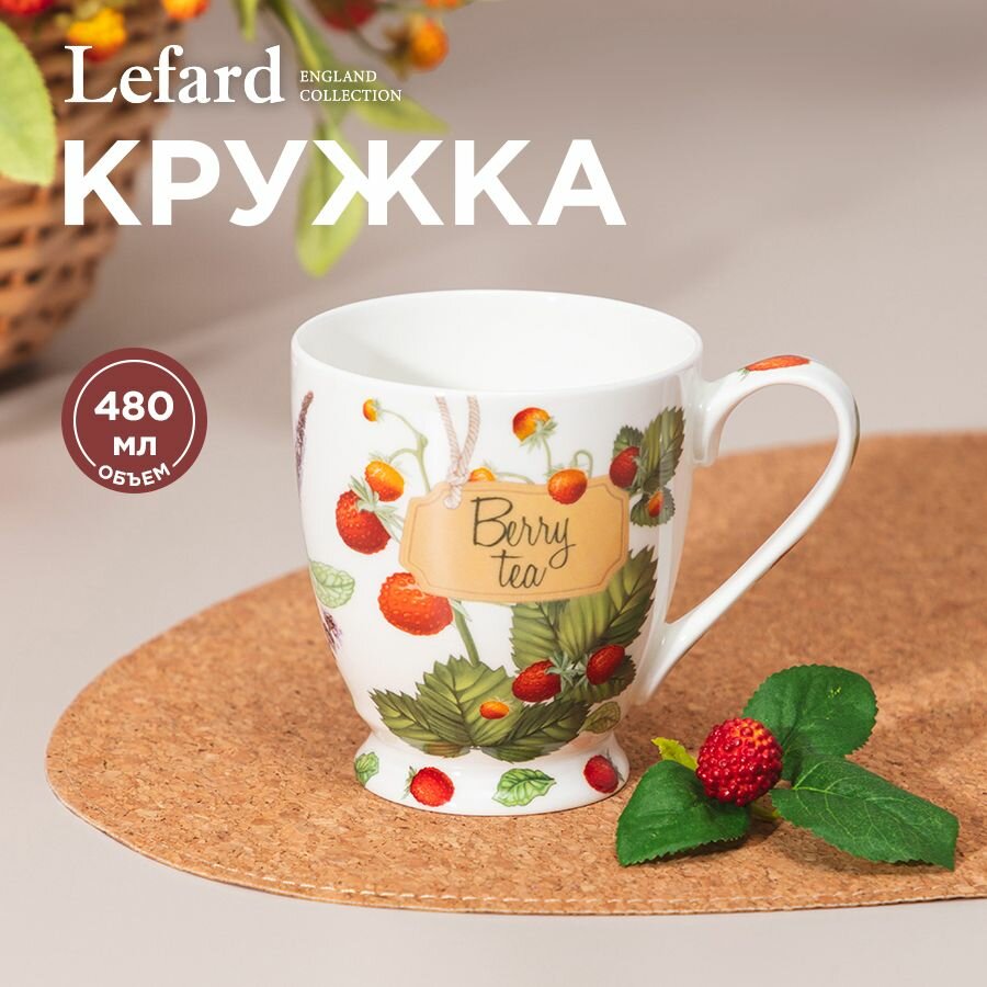 Кружка Lefard "Ежевика", 450 мл, для чая и кофе, фарфоровая, с рисунком