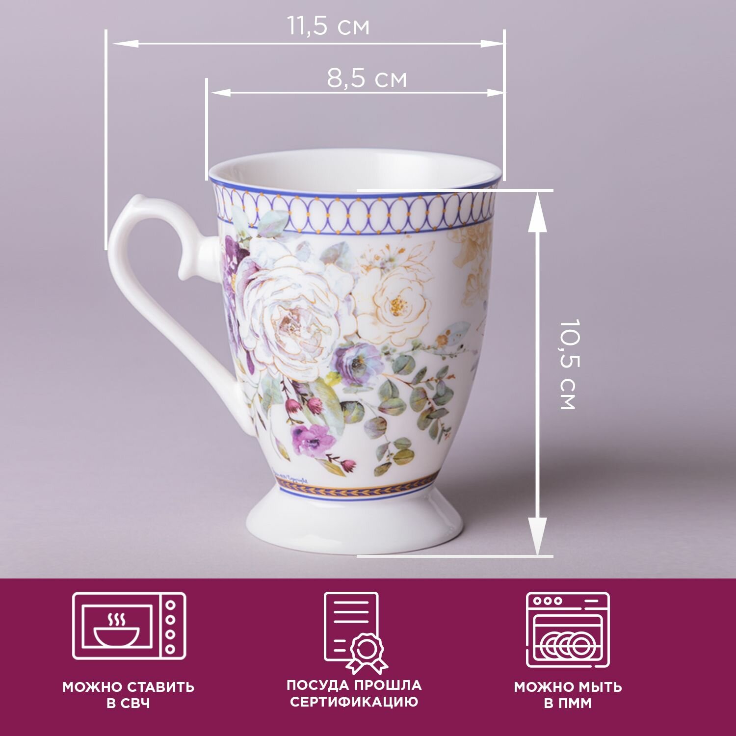 Кружка Lefard "Лавандовая весна", 340 мл, для чая и кофе, фарфоровая