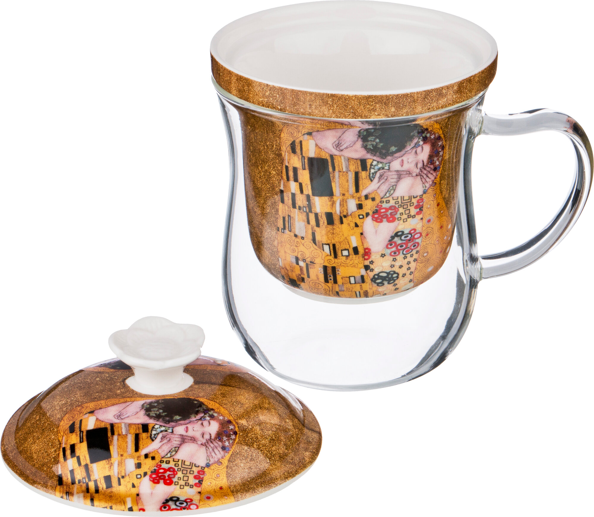 Купить Кружка Lefard "Поцелуй" Г. Климт, 350 мл, заварочная, стеклянная, с крышкой и ситом, для чая и кофе