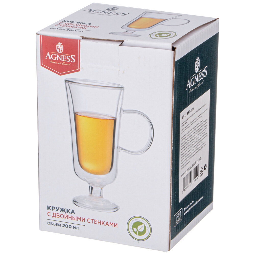 Кружка Agness "Монблан", объем: 300 мл, для чая и кофе, стеклянная
