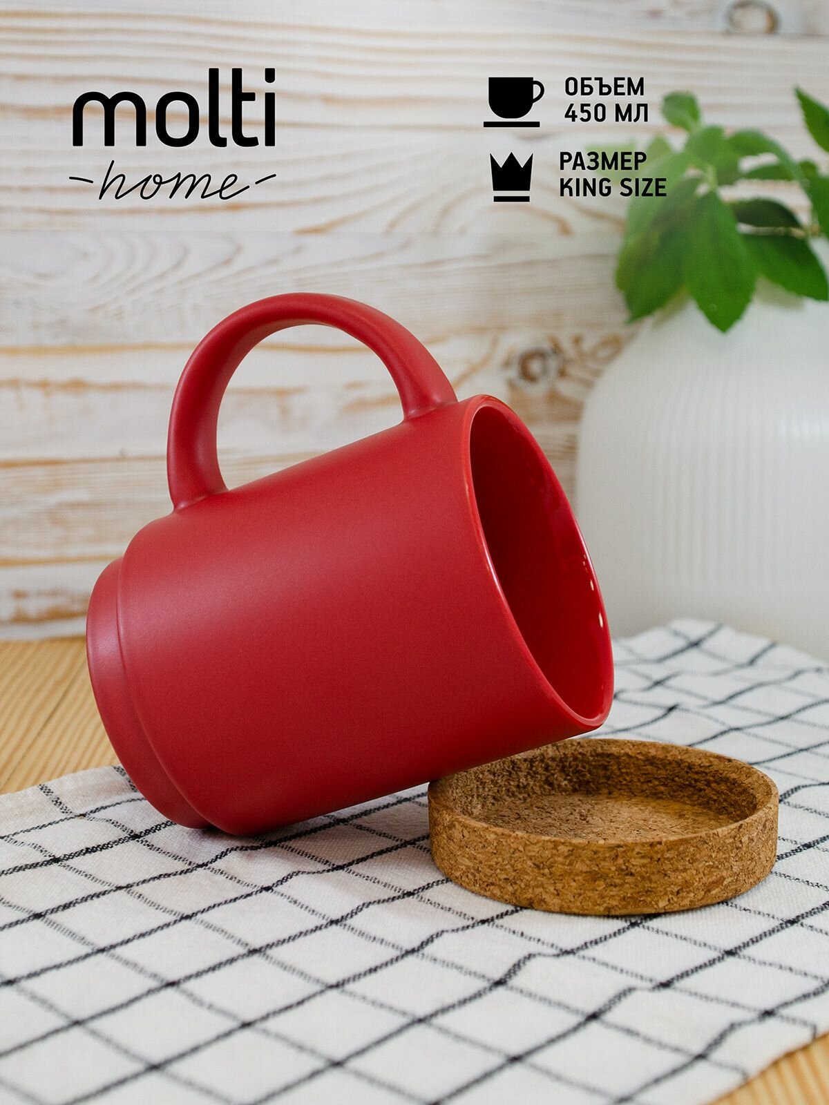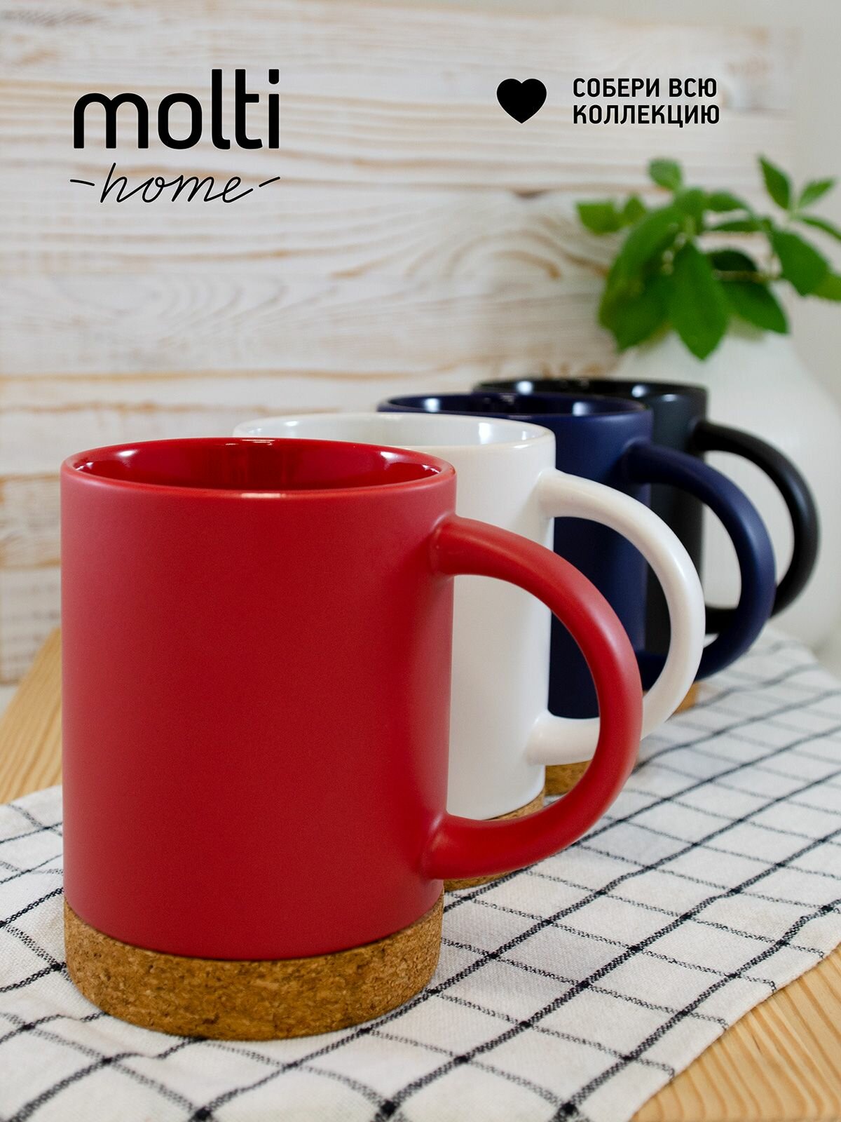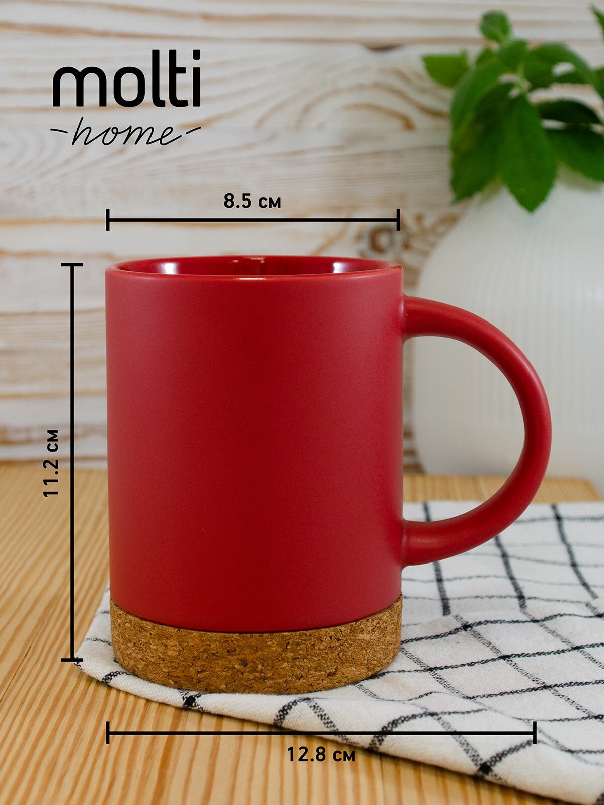 Купить Кружка матовая для чая и кофе molti Corky чашка подарочная с подставкой из пробки 450 мл, красная