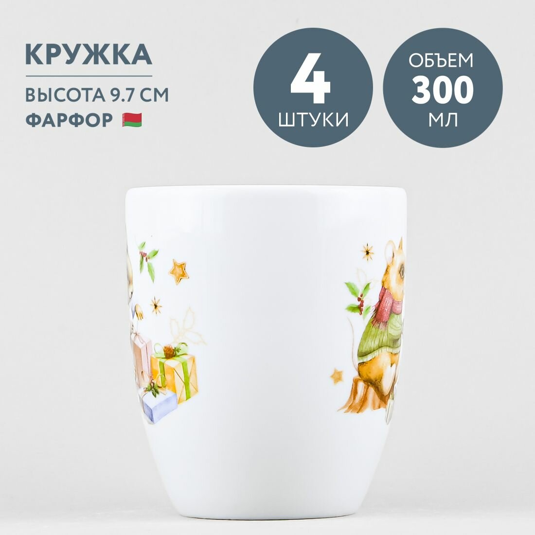 Набор из 4 кружек для чая и кофе 300 мл Добрушский фарфор Рождественский вечер интересное:
