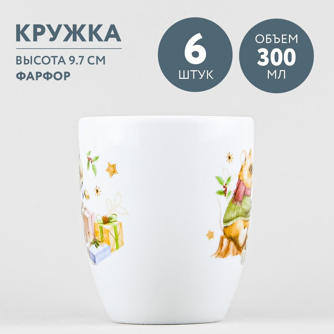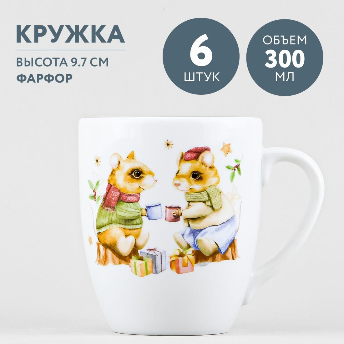 Набор из 6 кружек для чая и кофе 300 мл Добрушский фарфор Рождественский вечер интересное:
