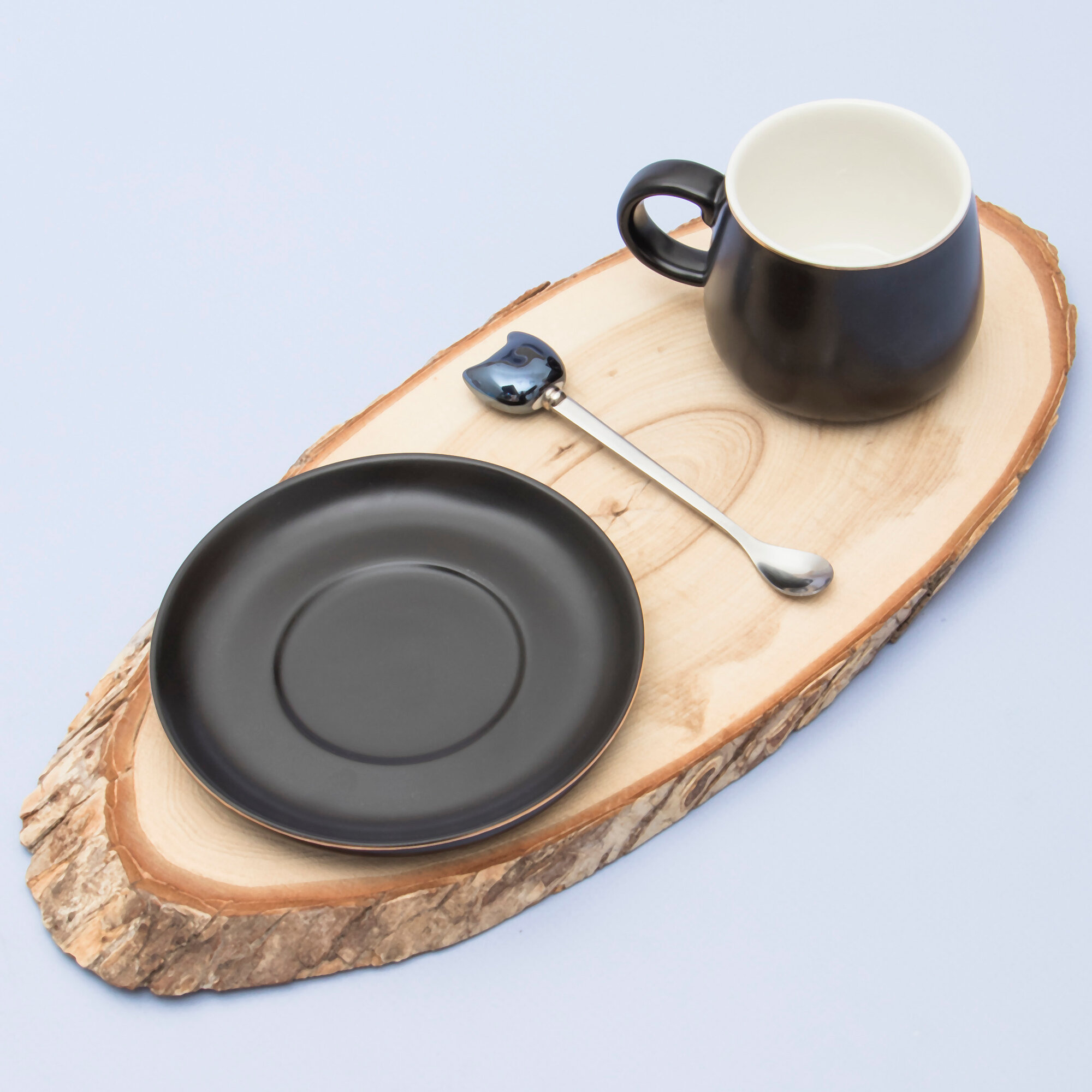 Кружка с блюдцем Котик Черный 180 мл Эврика, чашка с ложкой, кофейная пара, женская, подарочная на 14 февраля, 8 марта интересное: