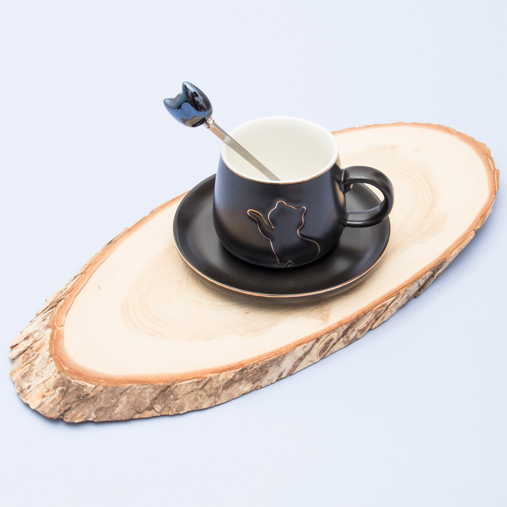 Купить Кружка с блюдцем Котик Черный 180 мл Эврика, чашка с ложкой, кофейная пара, женская, подарочная на 14 февраля, 8 марта