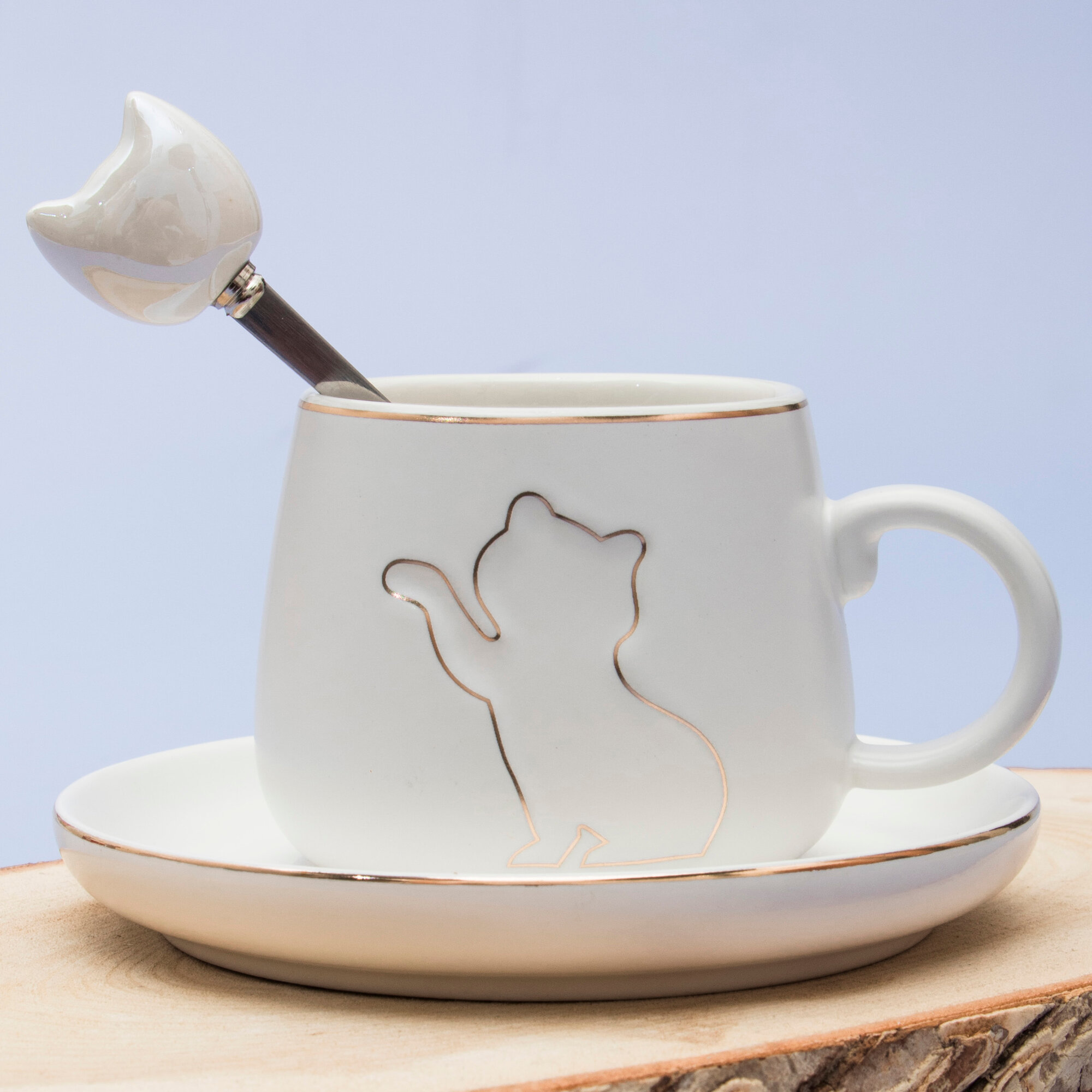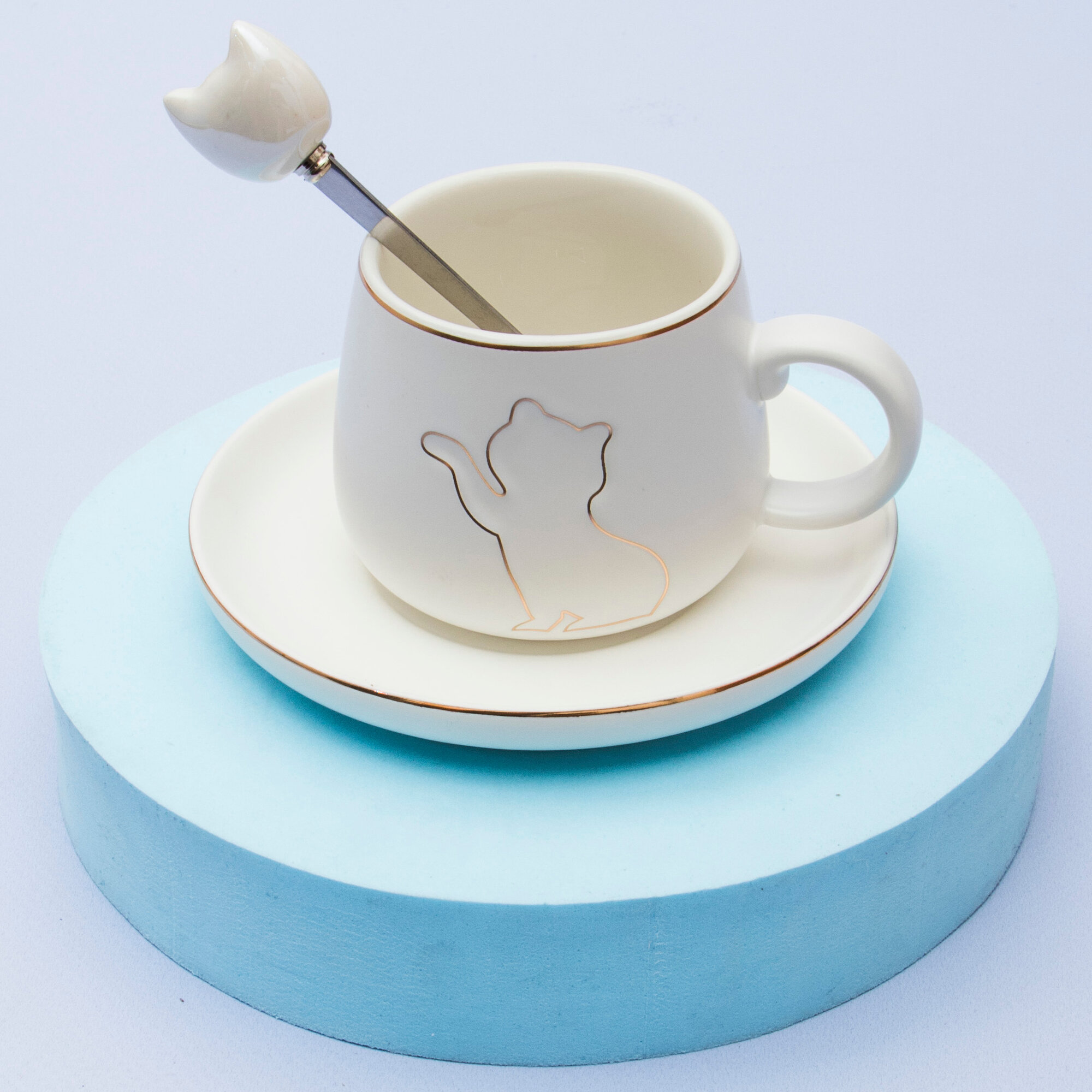 Купить Кружка с блюдцем Котик Белый 180 мл Эврика, чашка с ложкой, кофейная пара, женская, подарочная на 14 февраля, 8 марта