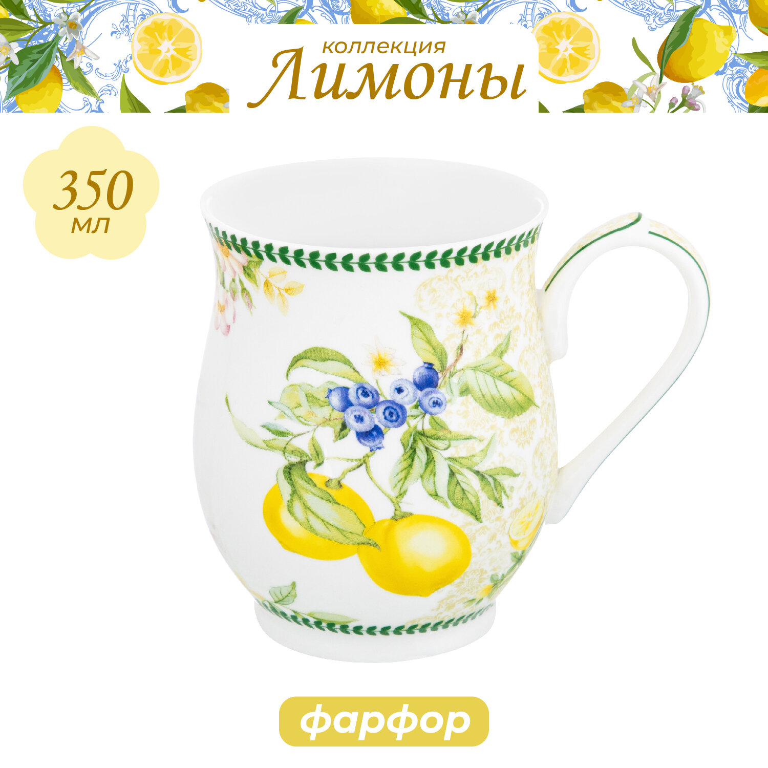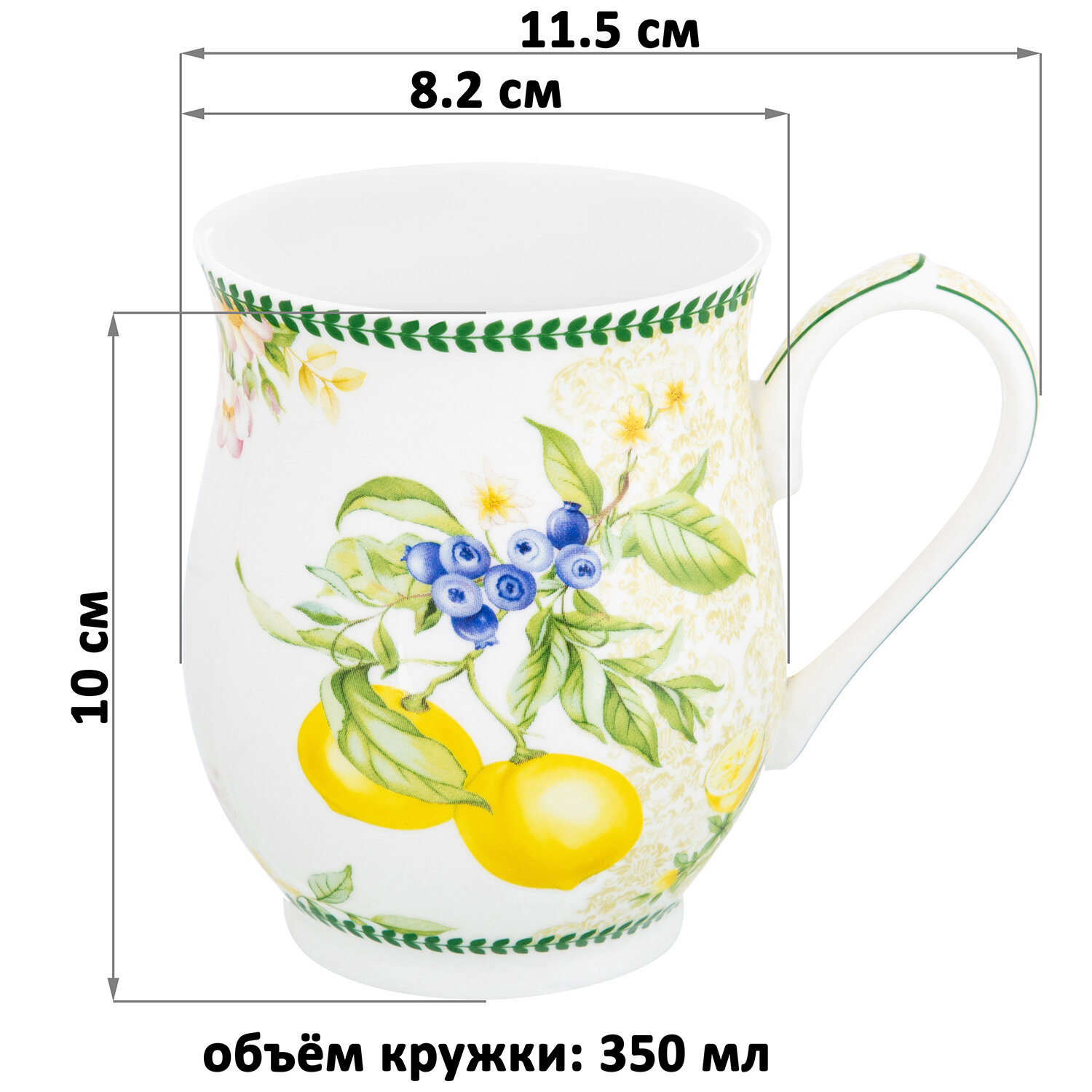 Кружка, чашка для чая, кофе 350 мл 11,5х8,2х10 см Elan Gallery Лимоны, бочонок интересное:
