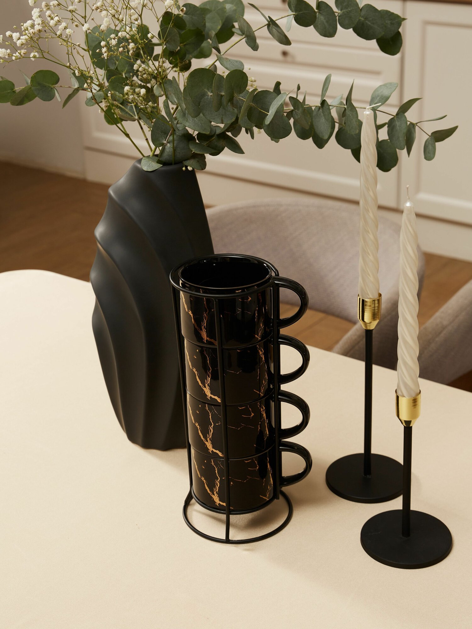 Кружки Lefard "Modern Lines", набор 4 шт, 370 мл, фарфоровые, с металлической подставкой
