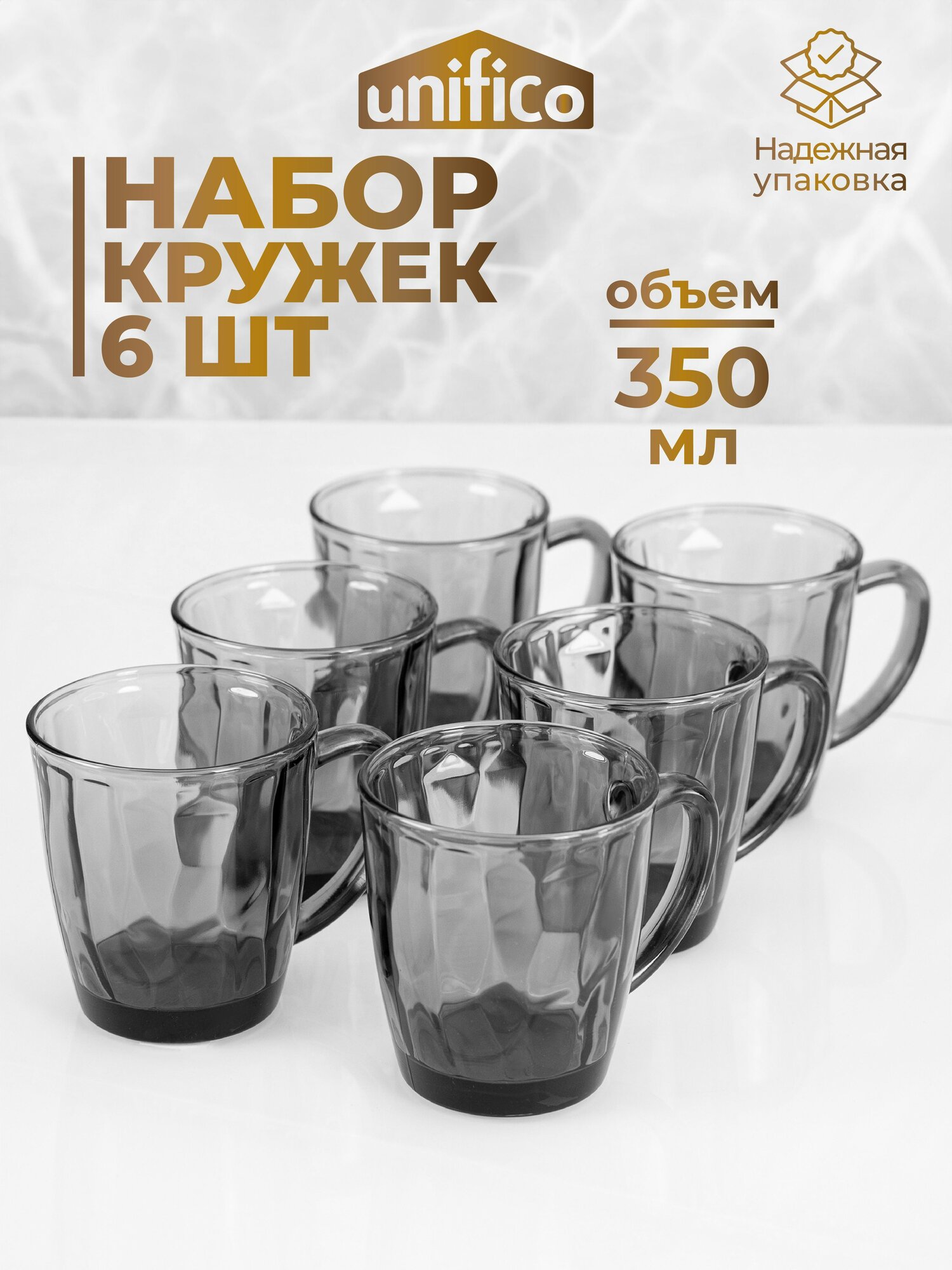 Набор кружек для чая и кофе из силикатного стекла 6 шт. 350 мл UNIFICO Diamante интересное: