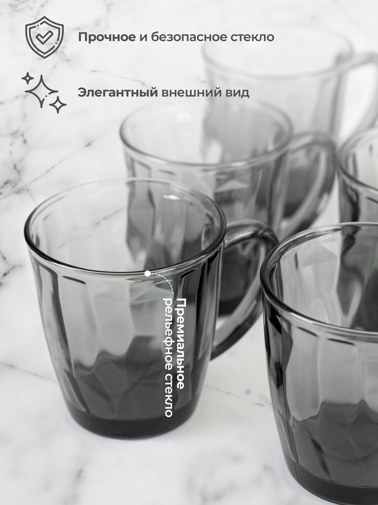 Набор кружек для чая и кофе из силикатного стекла 6 шт. 300 мл UNIFICO Vetro scuro