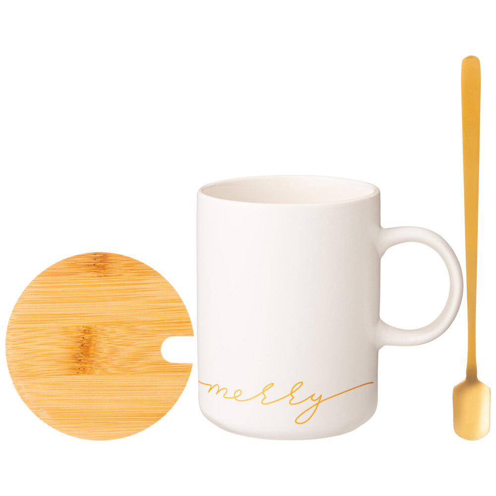 Купить Кружка 756-420 белая 380 мл с крышкой и ложкой