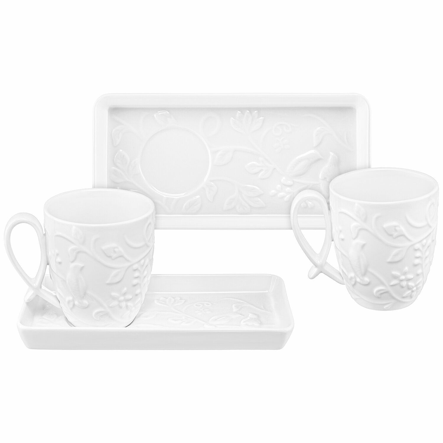 Купить Чашка с фарфоровым блюдцем для десерта, чайная пара 4 пр. 300 мл Elan Gallery Птички на ветке, набор