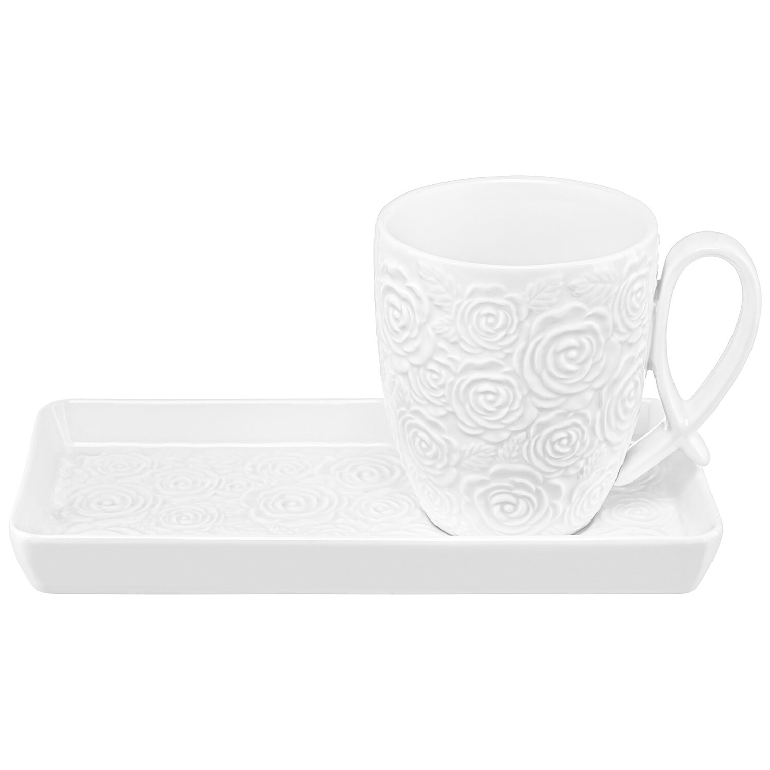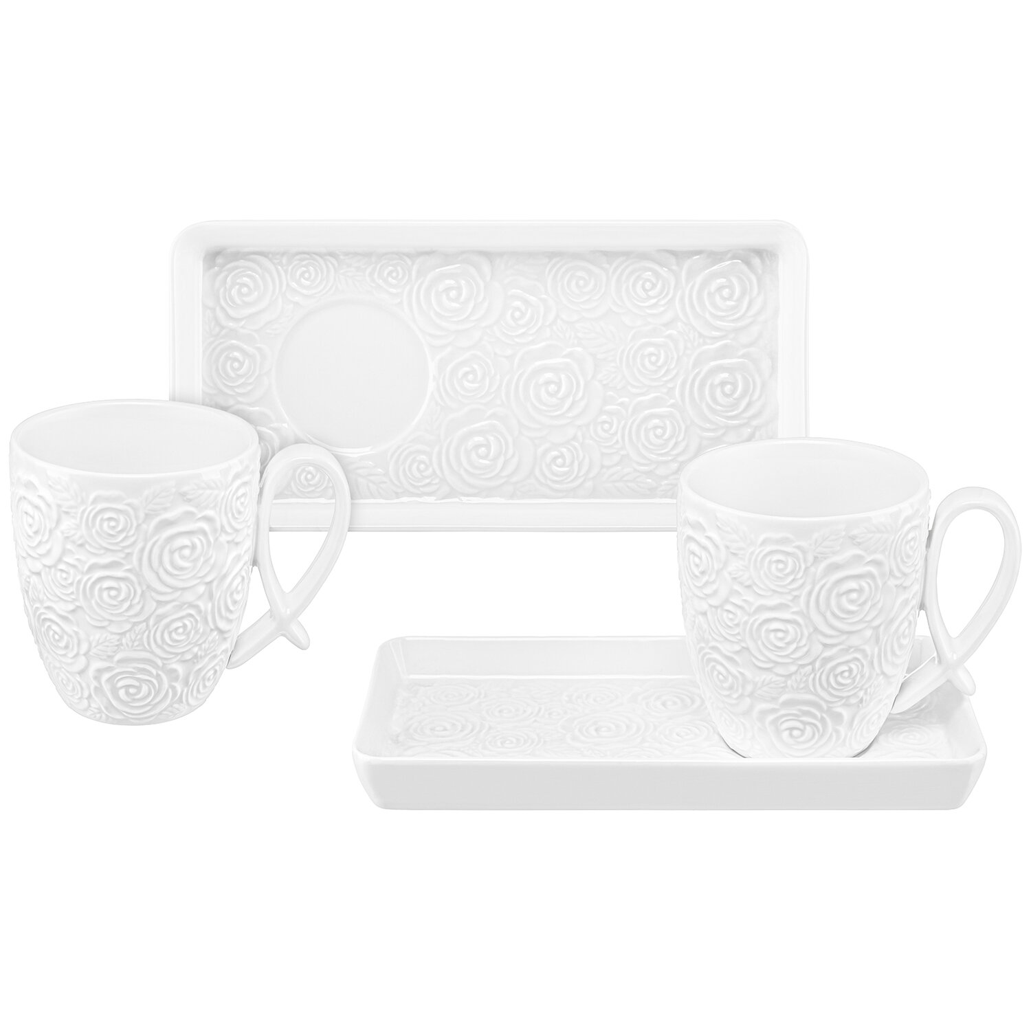 Купить Чашка с фарфоровым блюдцем для десерта, чайная пара 4 пр. 300 мл Elan Gallery Розы, набор