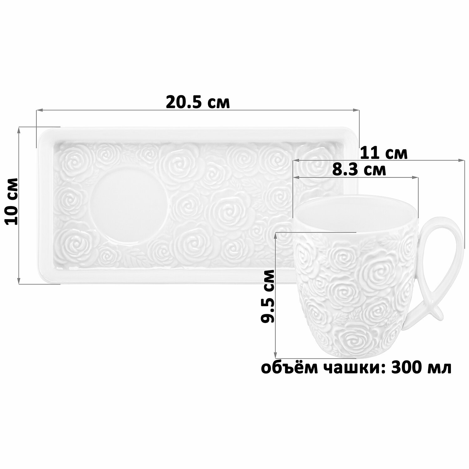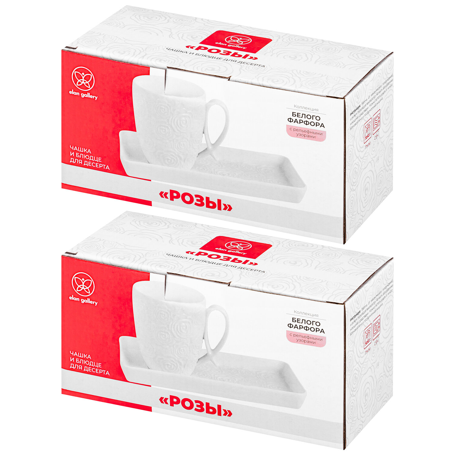 Чашка с фарфоровым блюдцем для десерта, чайная пара 4 пр. 300 мл Elan Gallery Розы, набор интересное: