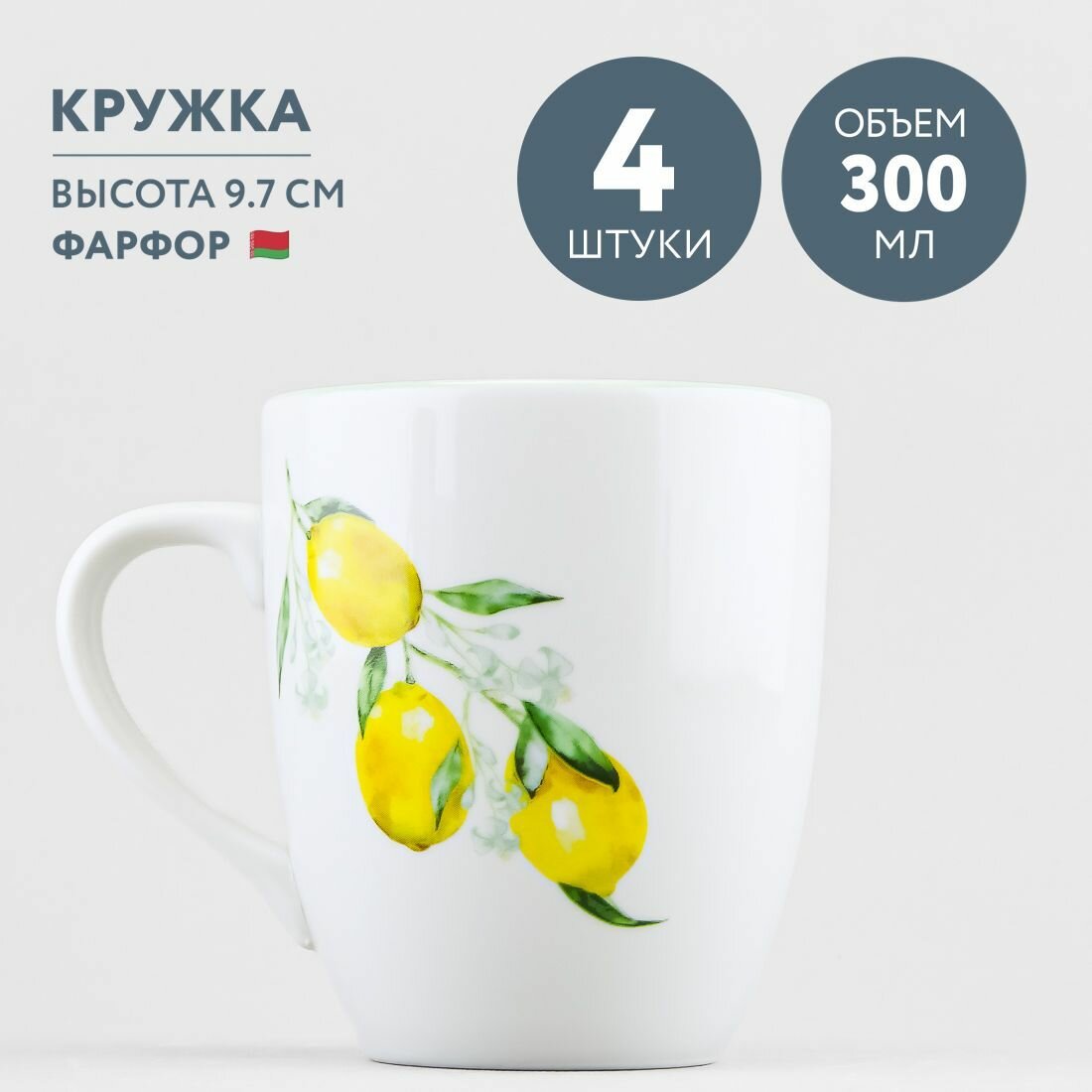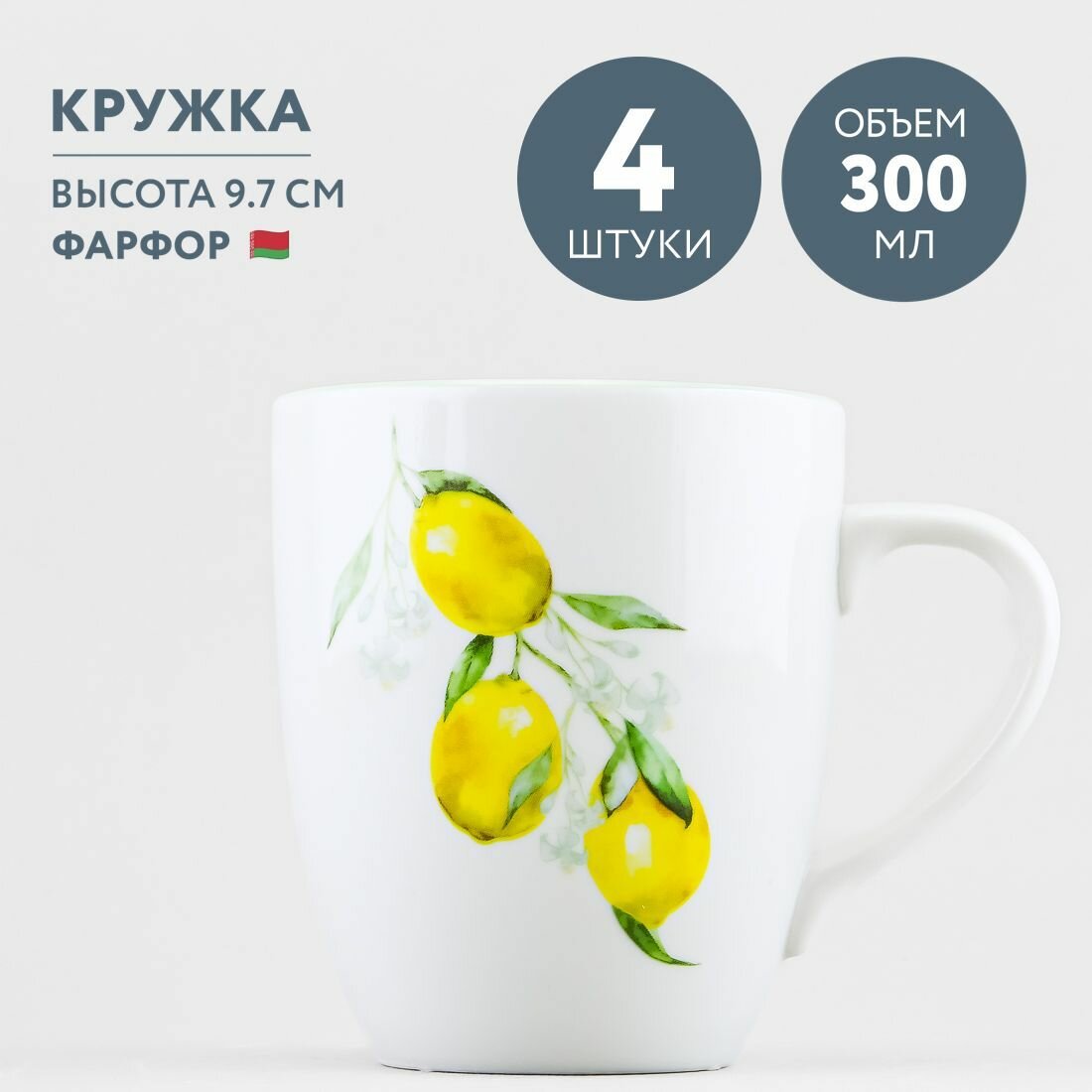 Набор из 4 кружек для чая и кофе 300 мл Добрушский фарфор Лимоны интересное: