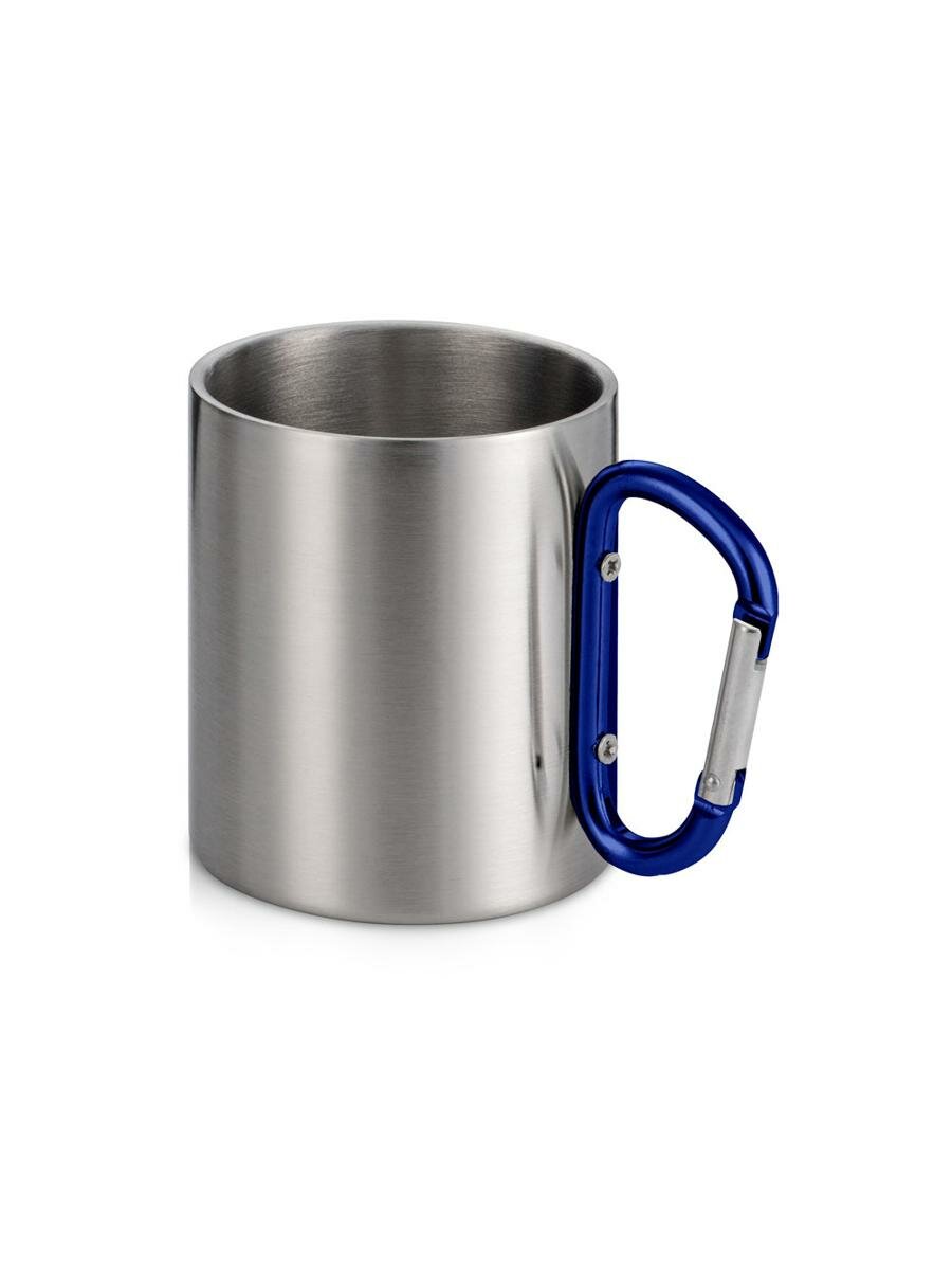 Купить Кружка с двойными стенками 'Elbrus' на 300 мл из нержавеющей стали с ручкой-карабином, не обжигает руки, не бьется, цвет серебристый, синий