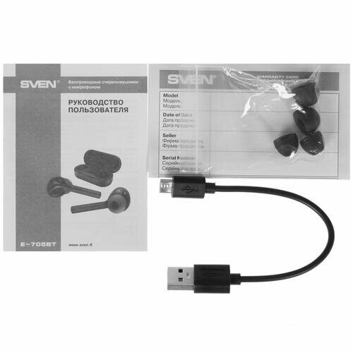Гарнитура Sven E-705BT (TWS), Bluetooth, вкладыши, черный матовый [sv-018672]