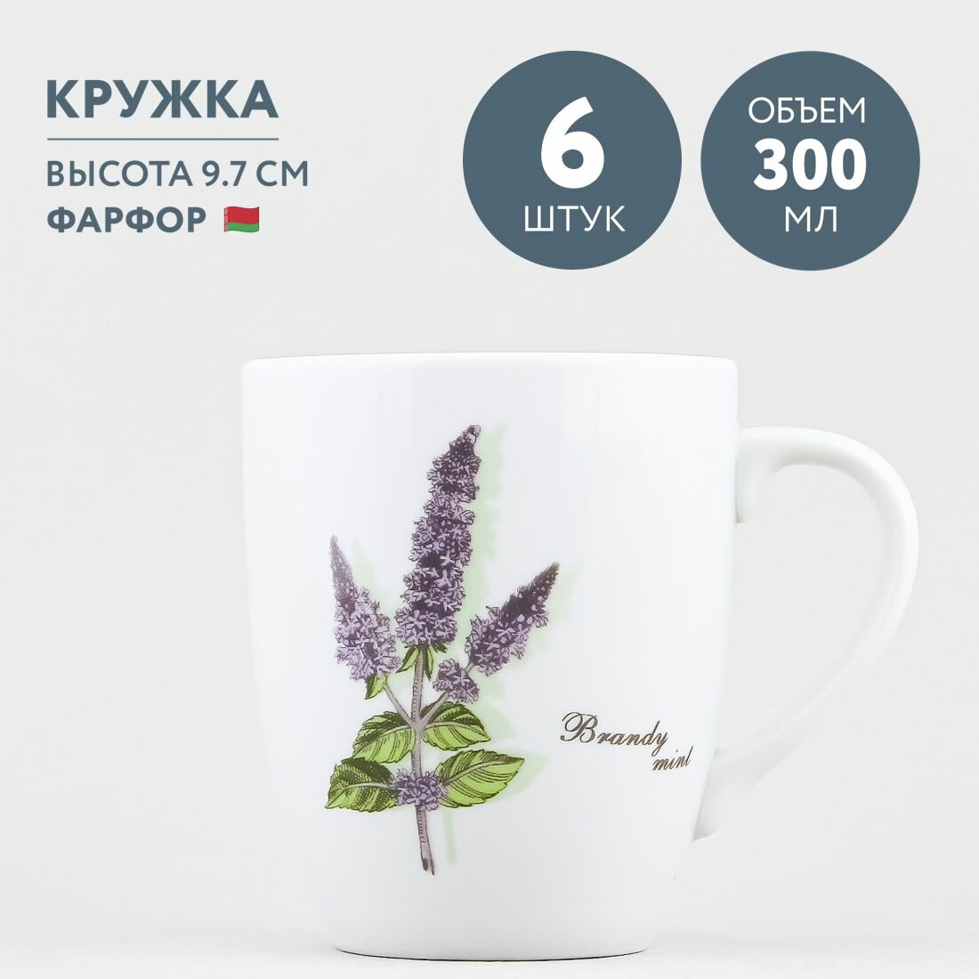 Набор из 6 кружек для чая и кофе 300 мл Добрушский фарфор Ботаника Brandy mint интересное: