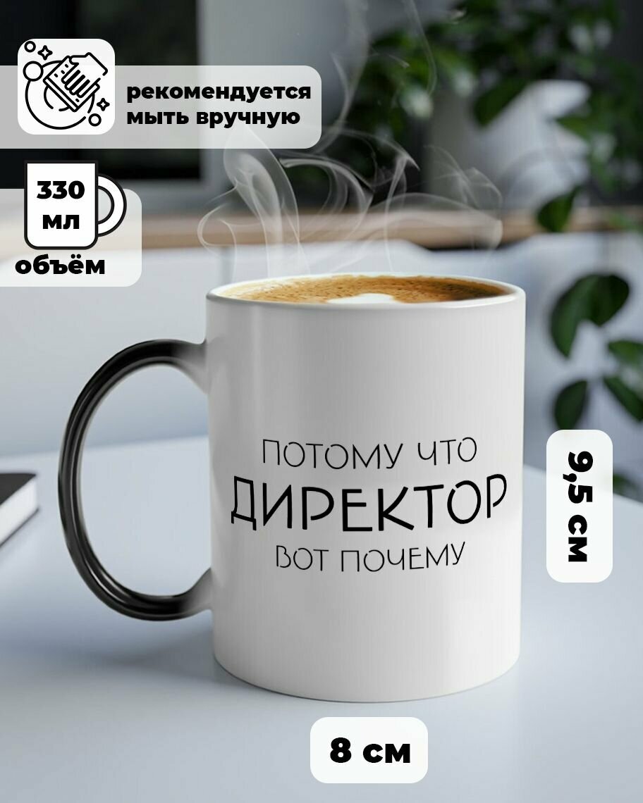 Купить Кружка хамелеон для чая и кофе подарок с приколом, принтом и надписью "Потому что директор"
