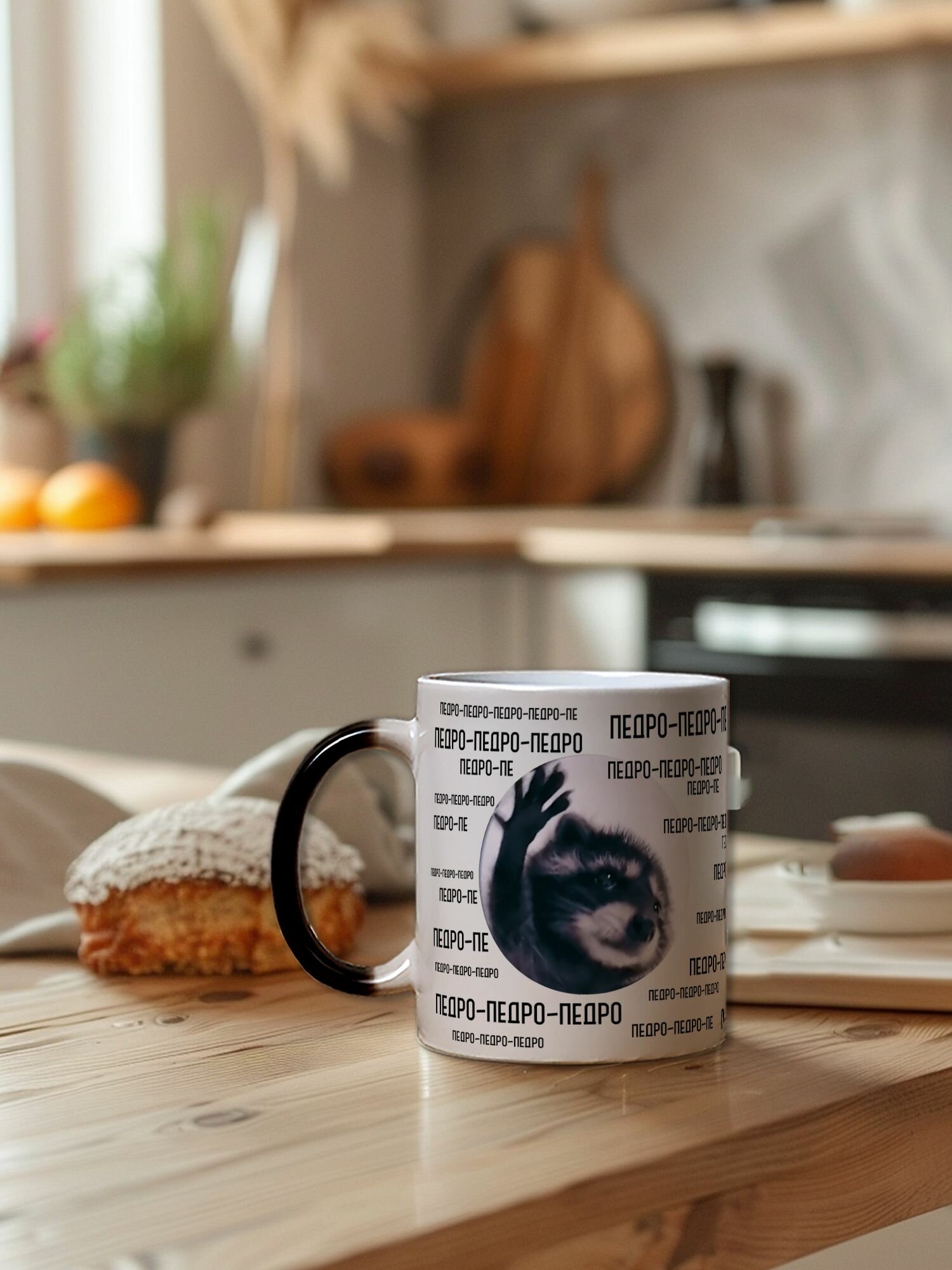 Купить Кружка хамелеон для чая и кофе подарок с приколом, принтом и надписью "Енот педро"