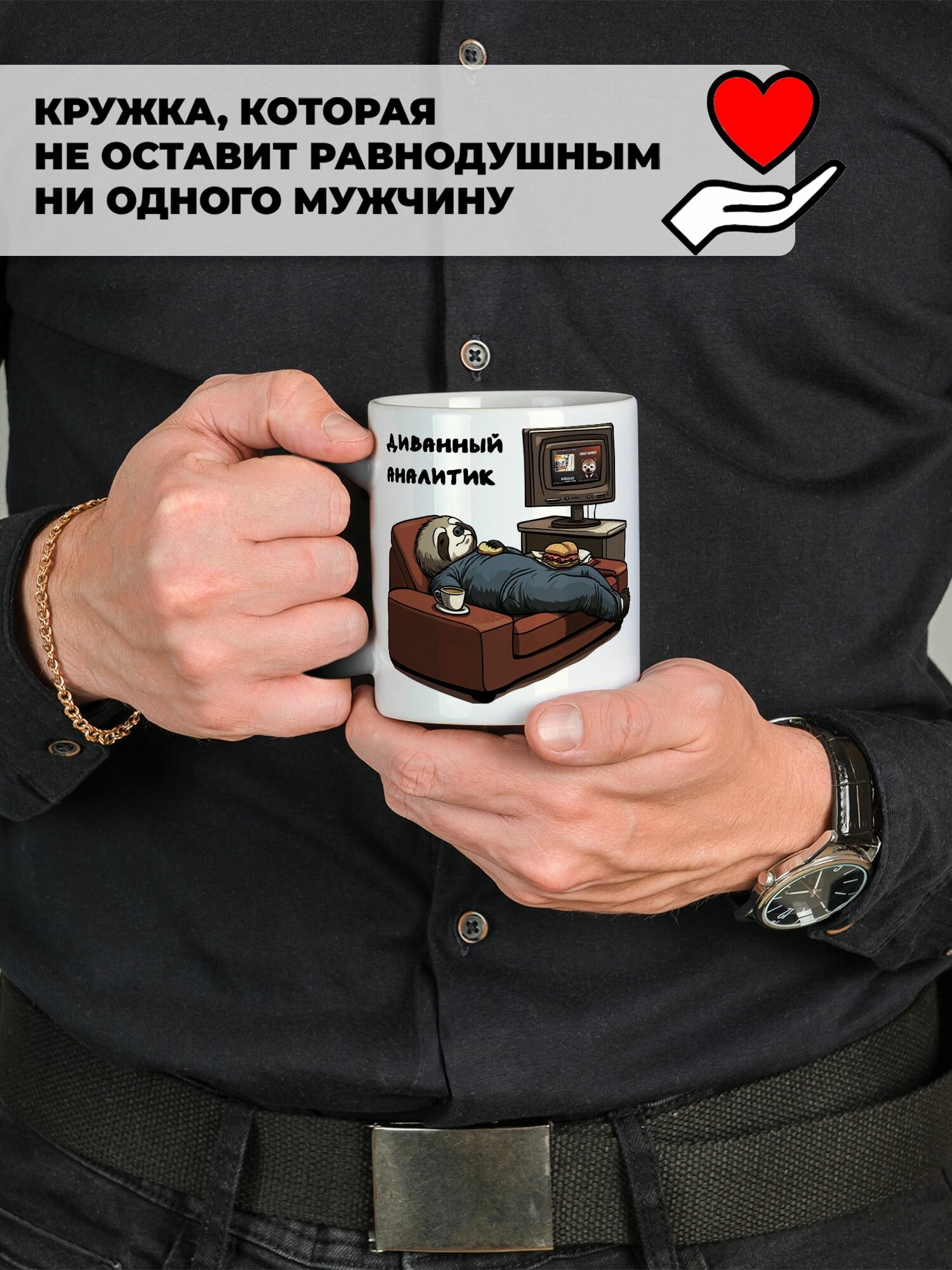 Кружка керамическая для чая и кофе именная подарок с приколом и принтом "Диванный аналитик"