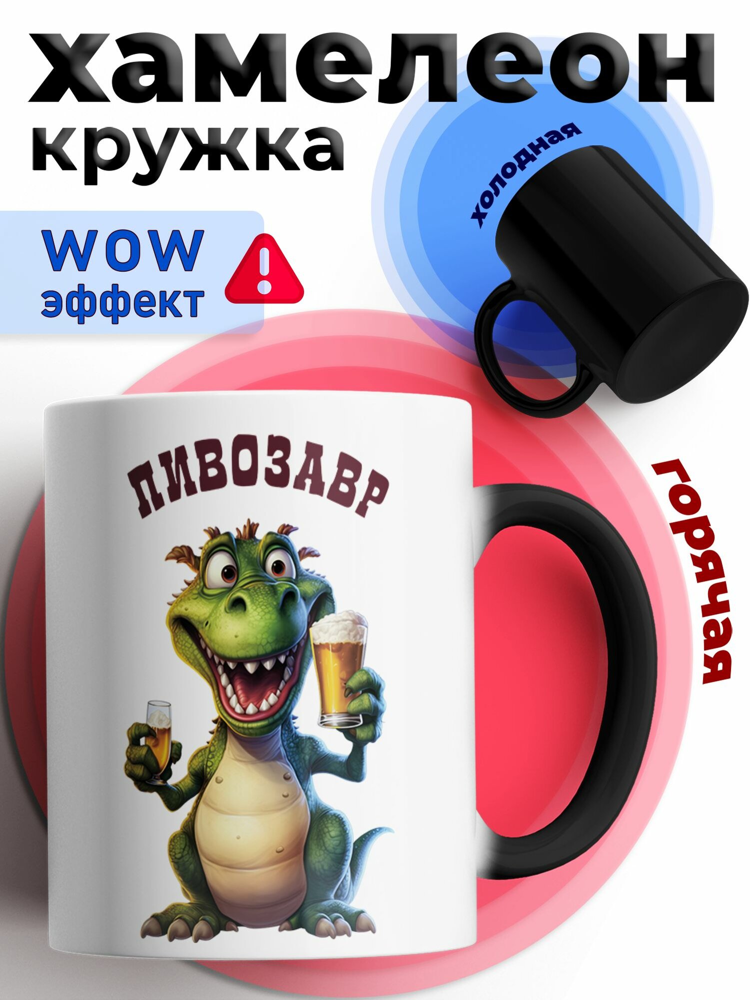 Кружка хамелеон для чая и кофе подарок с приколом, принтом и надписью "Пивозавр"