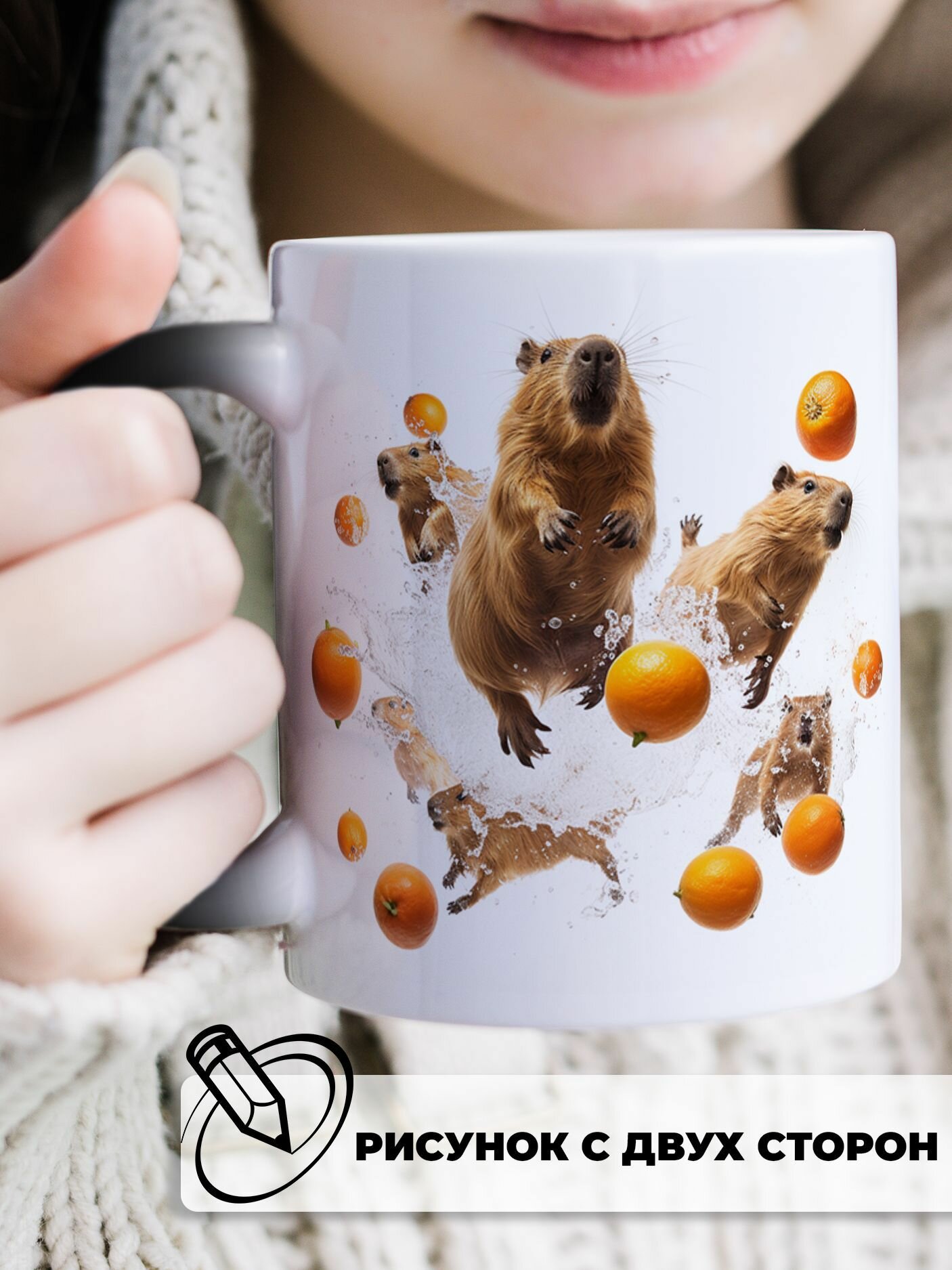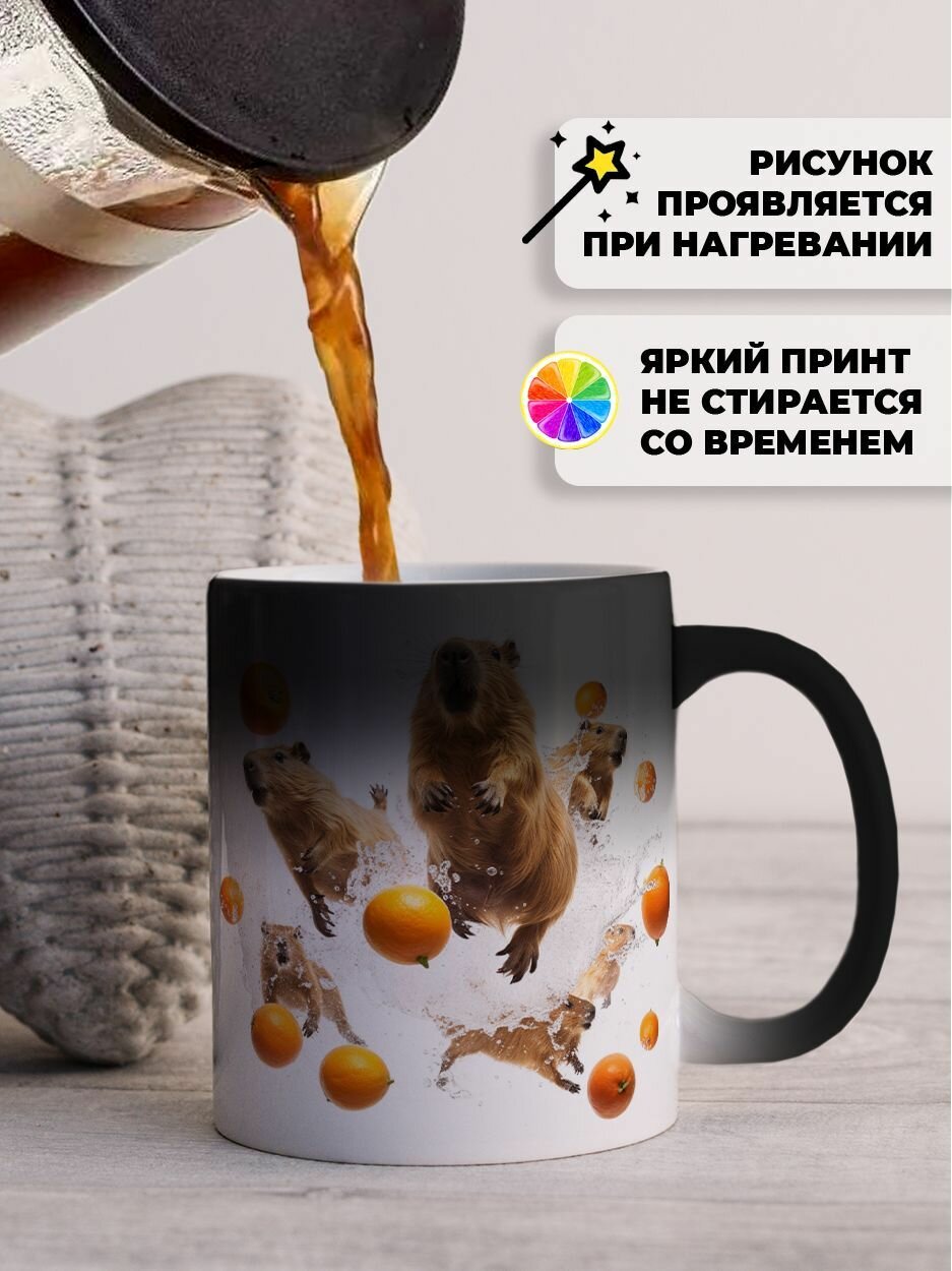 Купить Кружка хамелеон для чая и кофе подарок с приколом и принтом "Капибары в апельсинах"