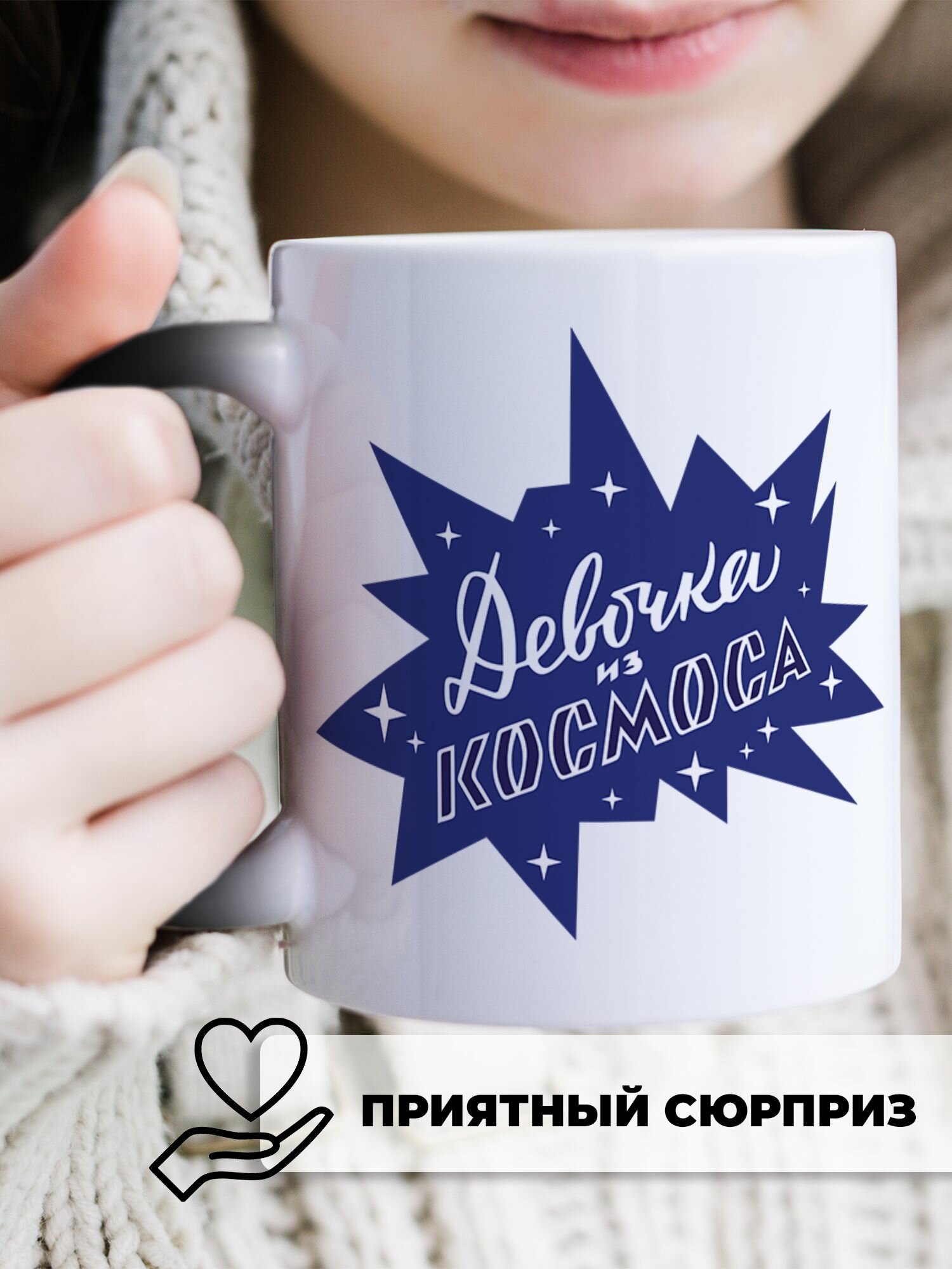 Купить Кружка хамелеон для чая и кофе подарок с принтом и надписью "Девочка из космоса"