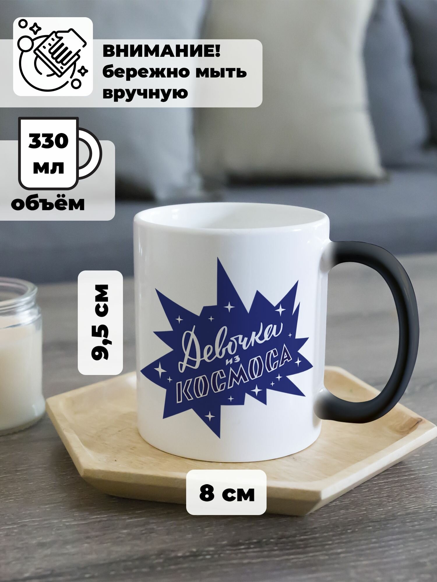 Ниже Вы можете прочитать отзывы на Кружка хамелеон для чая и кофе подарок с принтом и надписью "Девочка из космоса", ознакомится с подробными характеристиками, посмотреть интересные обзоры и фотографии на Кружка хамелеон для чая и кофе подарок с принтом и надписью "Девочка из космоса".