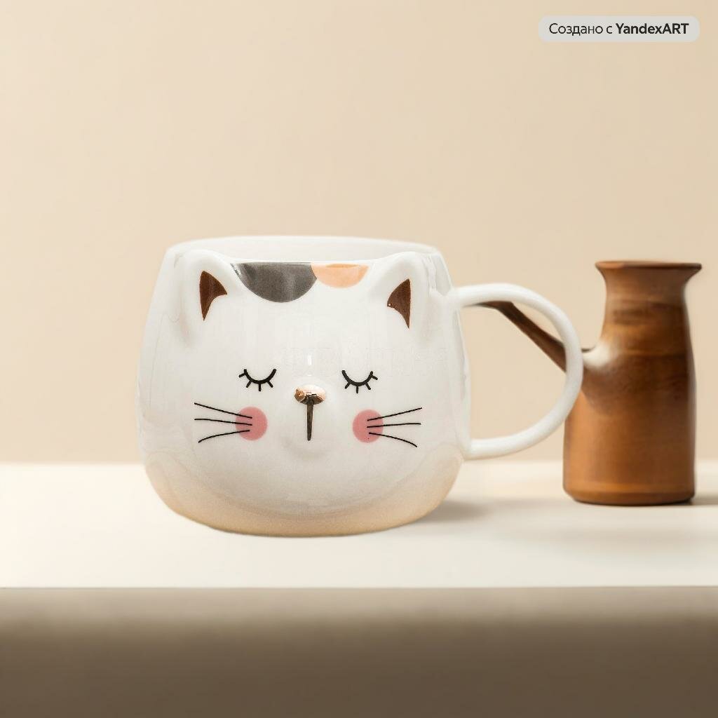 Кружка Котик Хвостик белый Эврика 410 мл (N 4) чашка для чая и кофе, детская, женская, подарочная на 8 марта