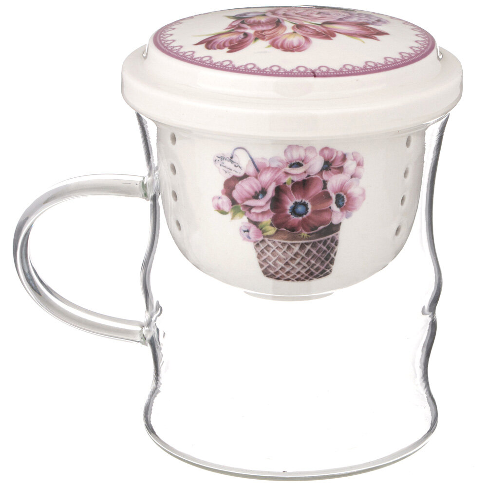 Купить Кружка 87-332 стеклянная с фарфоровым ситом 420 мл