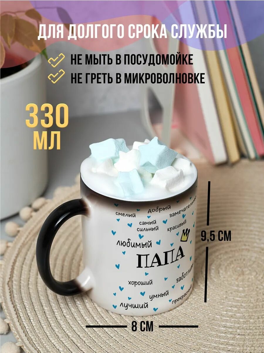 Купить Кружка хамелеон с приколом подарок папе на день рождения с принтом "Комплименты папе"