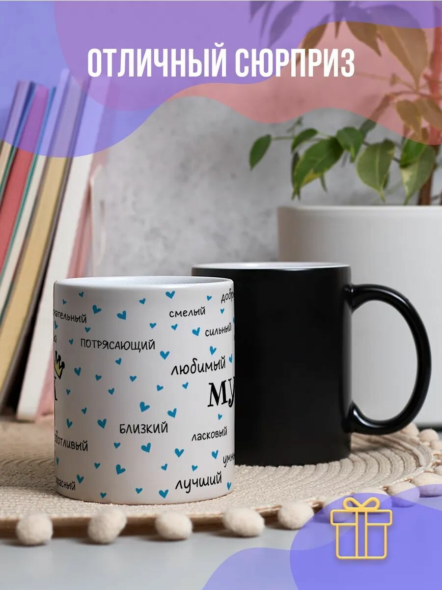 Кружка керамическая с приколом подарок мужу на день рождения с оживающим принтом "Комплименты мужу"