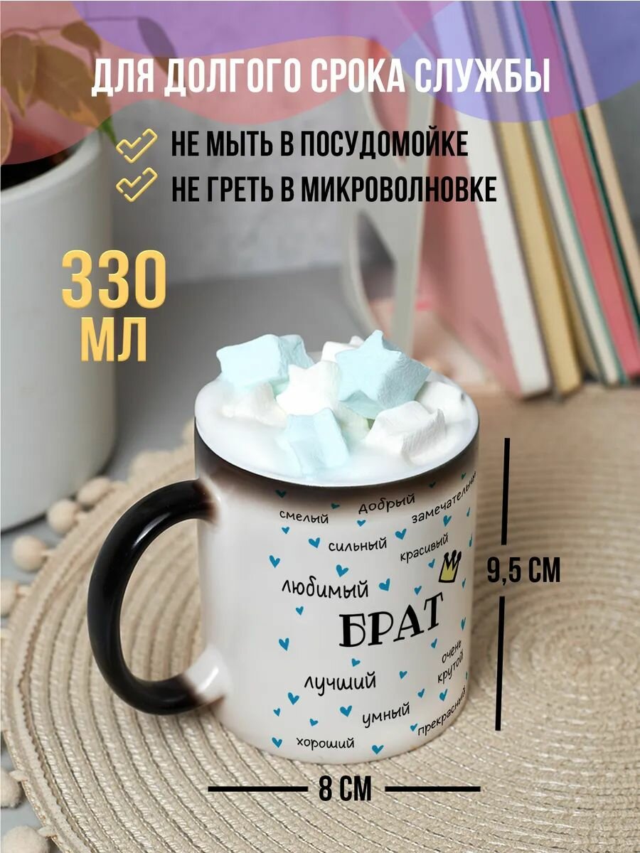 Кружка керамическая с приколом подарок брату на день рождения с оживающим принтом "Комплименты брату"