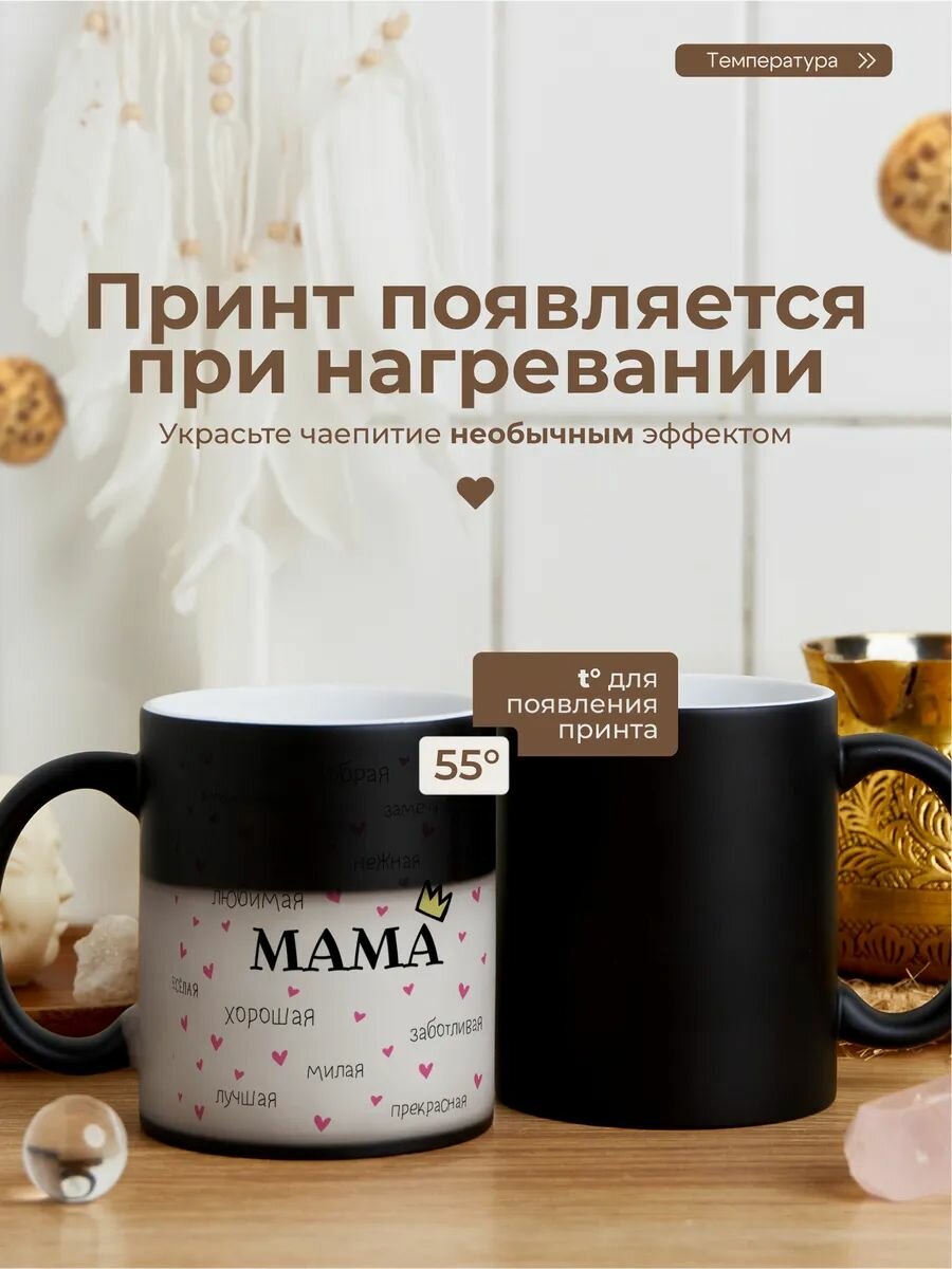 Кружка керамическая с приколом подарок маме на день рождения с оживающим принтом "Комплименты маме"