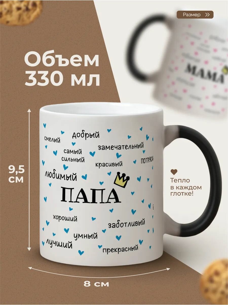 Кружка керамическая с приколом подарок папе на день рождения с оживающим принтом "Комплименты папе"