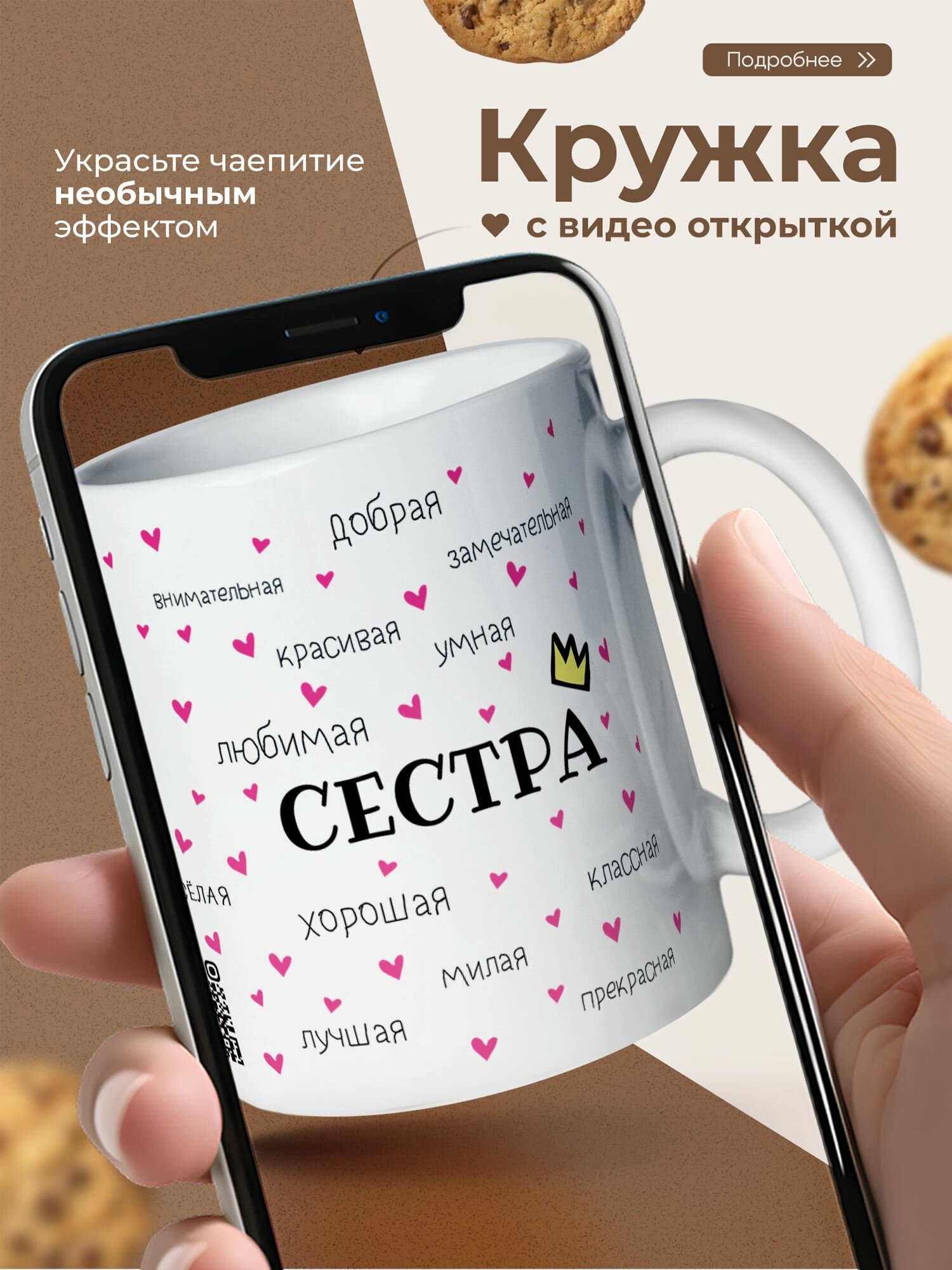Купить Кружка керамическая с приколом подарок сестре на день рождения с оживающим принтом "Комплименты сестре"
