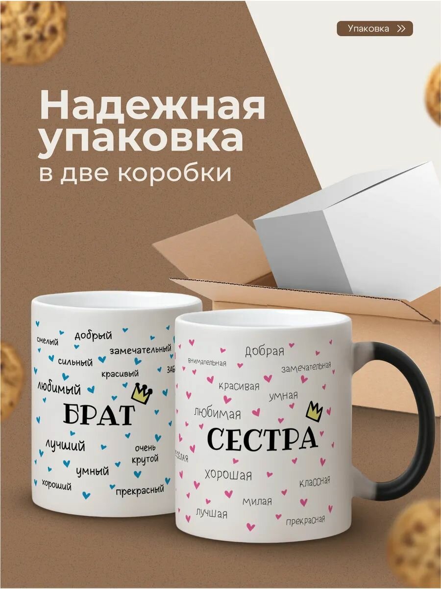 Купить Набор кружек хамелеон с приколом подарок брату и сестре на день рождения с принтом "Комплименты"