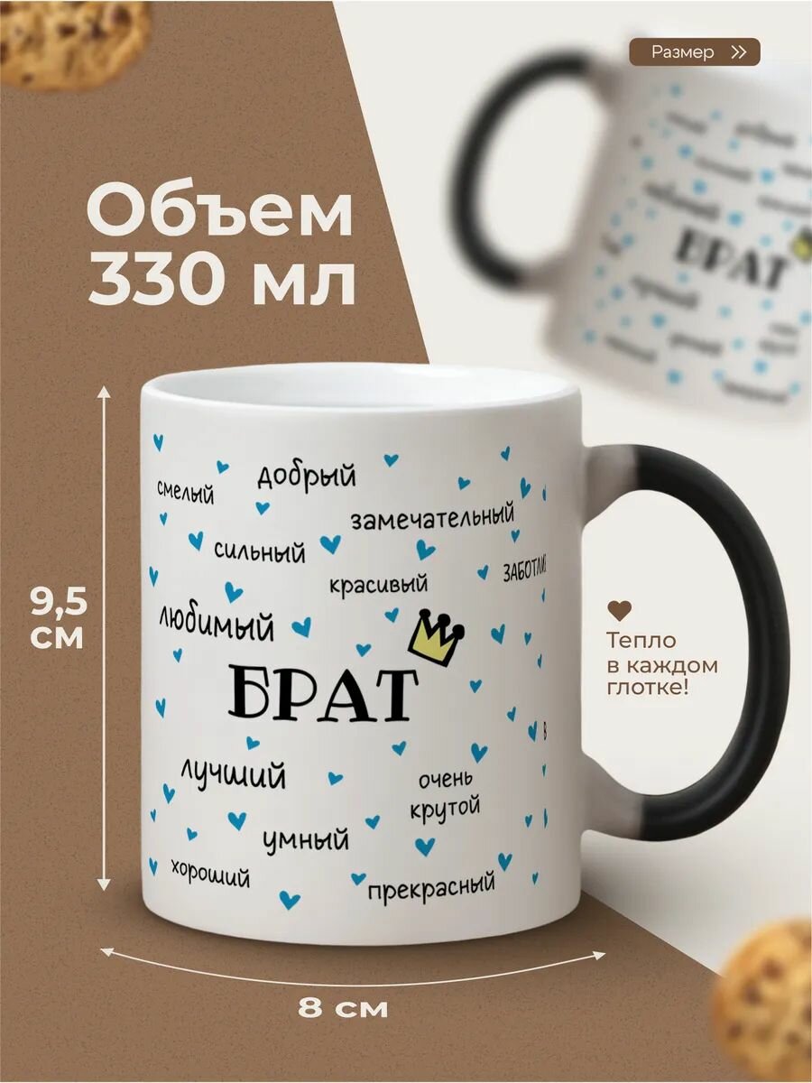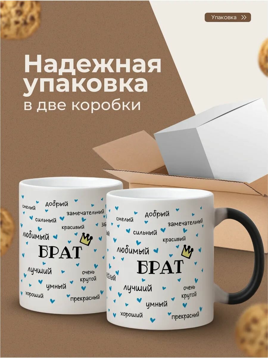 Кружка керамическая с приколом подарок брату на день рождения с оживающим принтом "Комплименты брату"