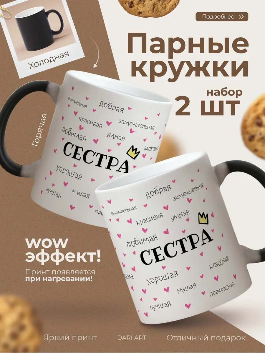 СохранитьНабор кружек хамелеон с приколом подарок сестре на день рождения с принтом "Комплименты" интересное: