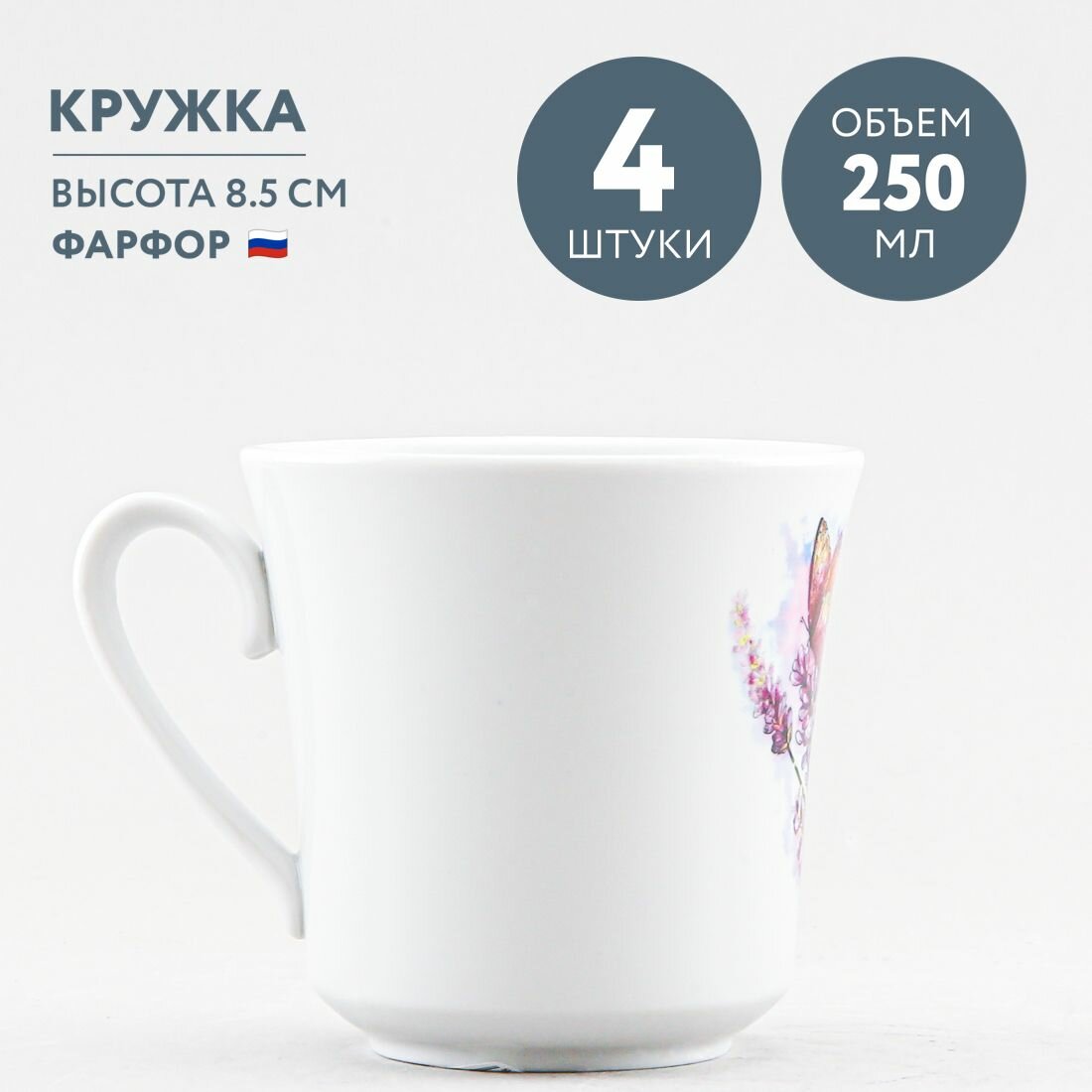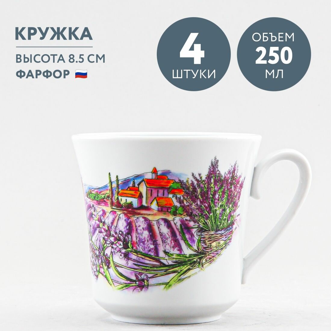 Набор из 4 кружек для чая и кофе 250 мл Дулевский фарфор Прованс интересное: