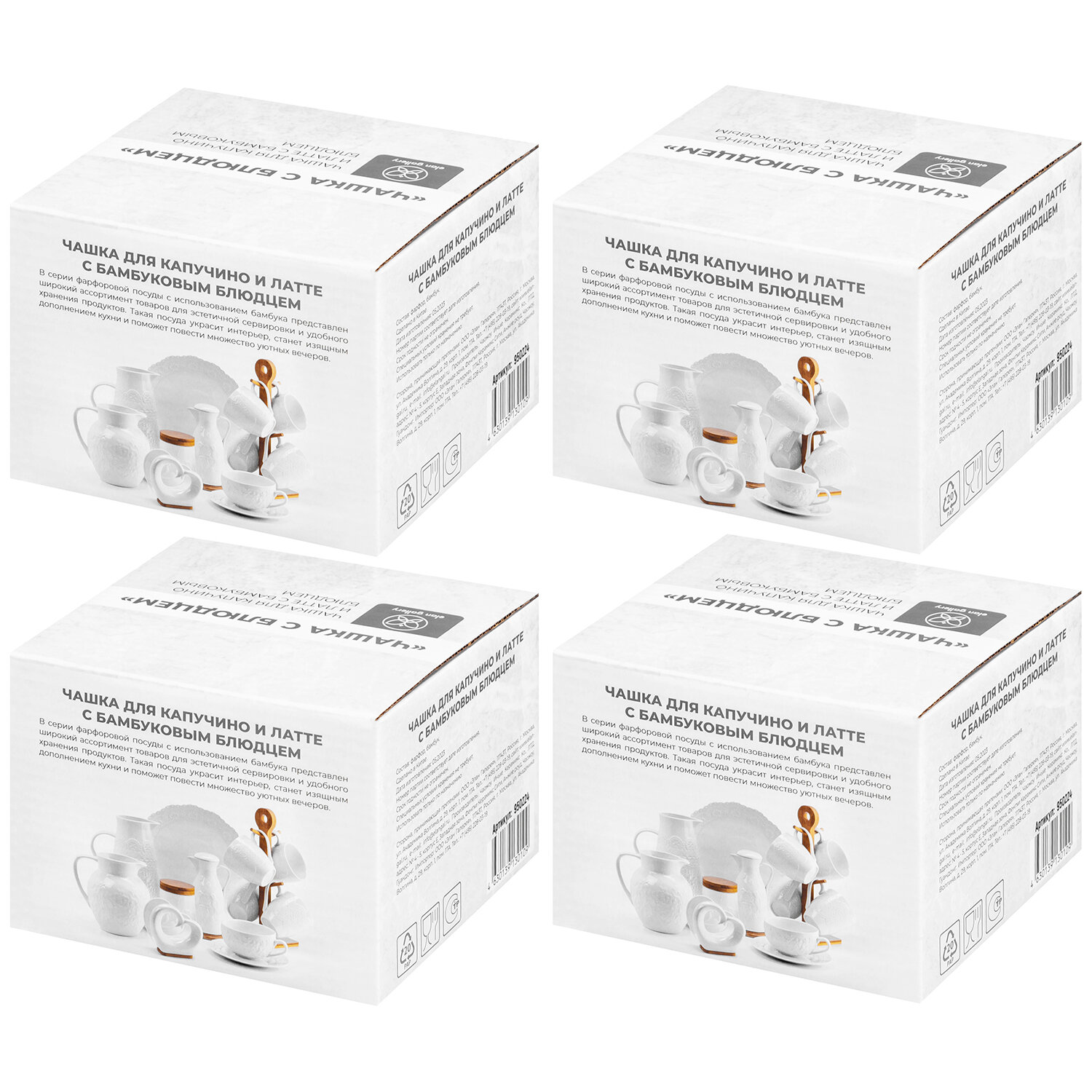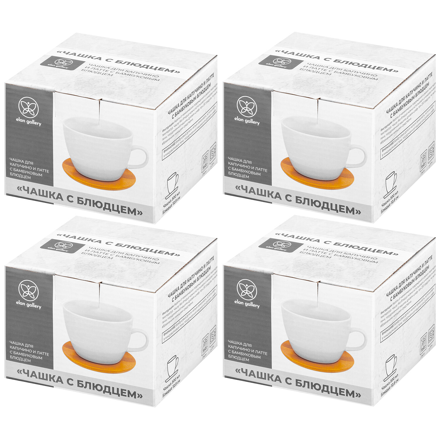 Купить Чашка, кружка для чая, кофе 4 шт по 500 мл Elan Gallery Снежная королева + дер. подставка, набор