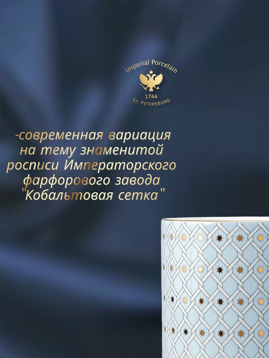Кружка 400 мл. Форма "Идиллия", рисунок "Индиго 2". Костяной фарфор. Бокал для чая. Императорский фарфоровый завод ИФЗ ЛФЗ.