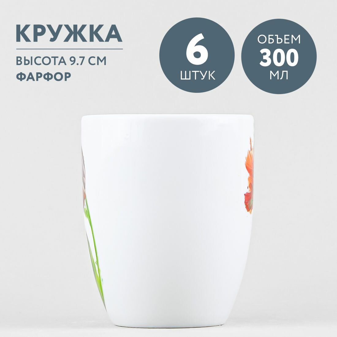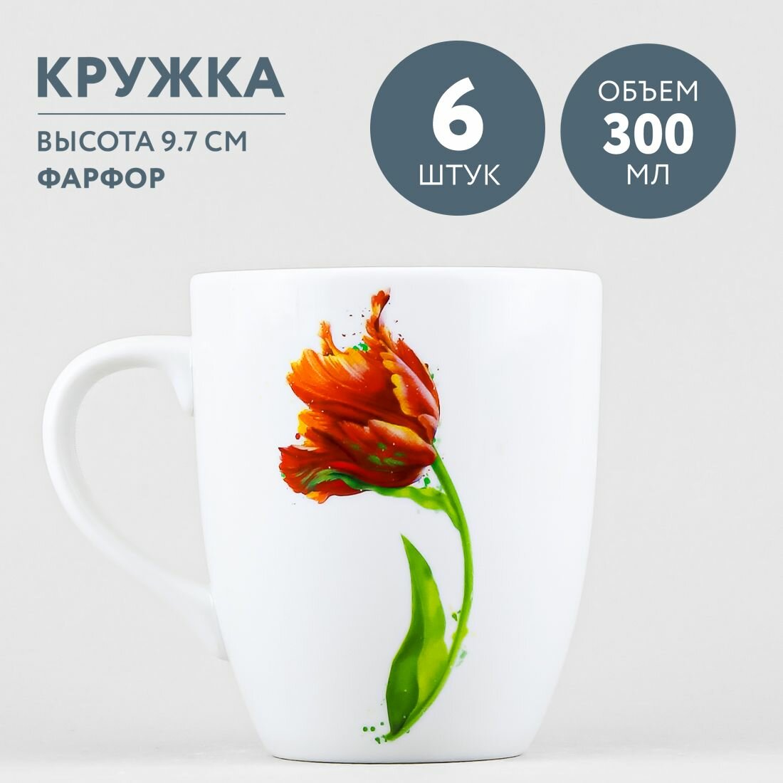 Набор из 6 кружек для чая и кофе 300 мл Добрушский фарфор Тюльпан интересное: